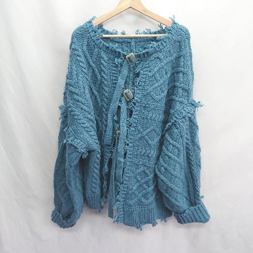 ◇ ⊇ antiqua KINU アンティカ 長袖 ニットカーディガン サイズF ブルー レディース E