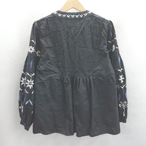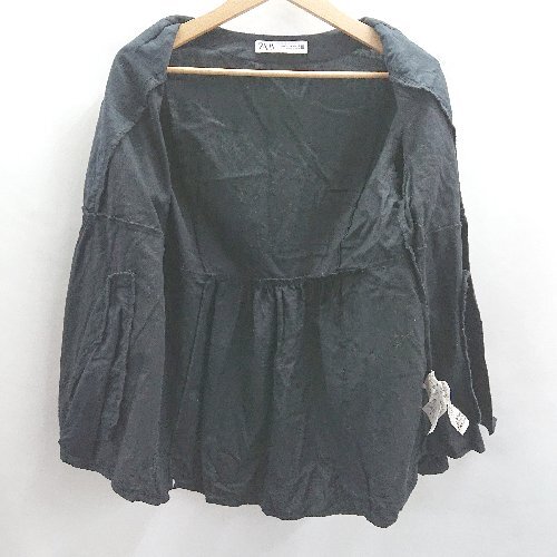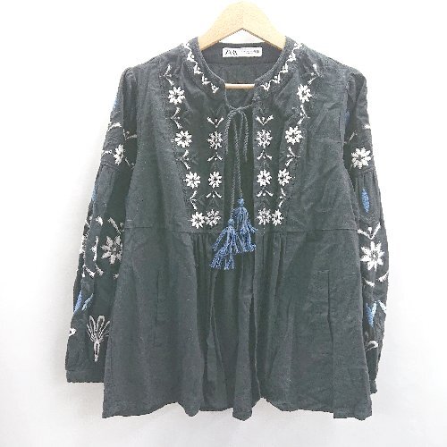 ◇ ⊇ ZARA ザラ 花柄刺? パフスリーブ ポンチョ風 長袖 トップス サイズEUR S ブラック ホワイト ブルー レディース E
