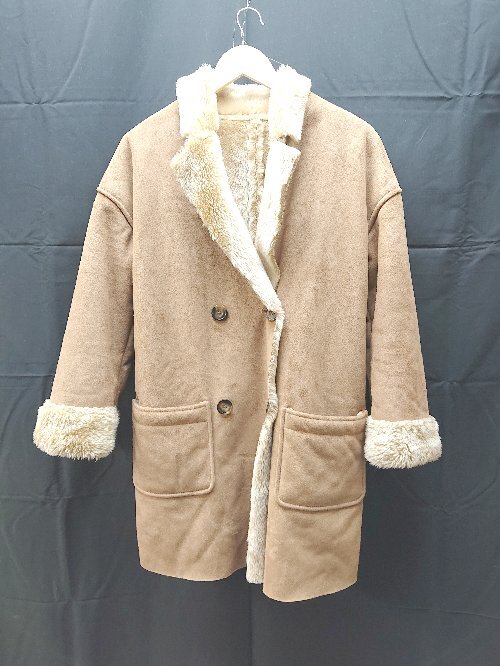 ◇ Find your rial life シャギー ラペルカラー ダブルブレスト 長袖 コート サイズF ブラウン レディース E
