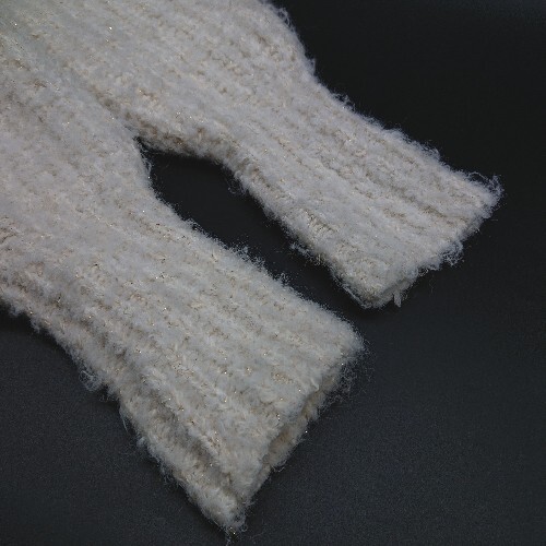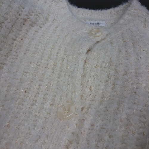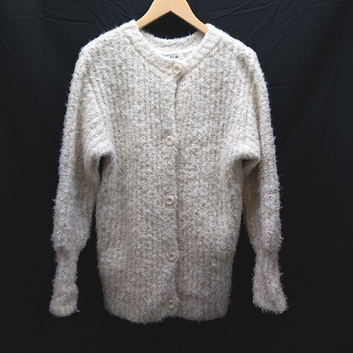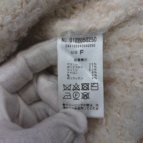 ◇ one after another NICE CLAUP ラメ もこもこ ガーリー 長袖 ニット カーディガン サイズF オフホワイト レディース E