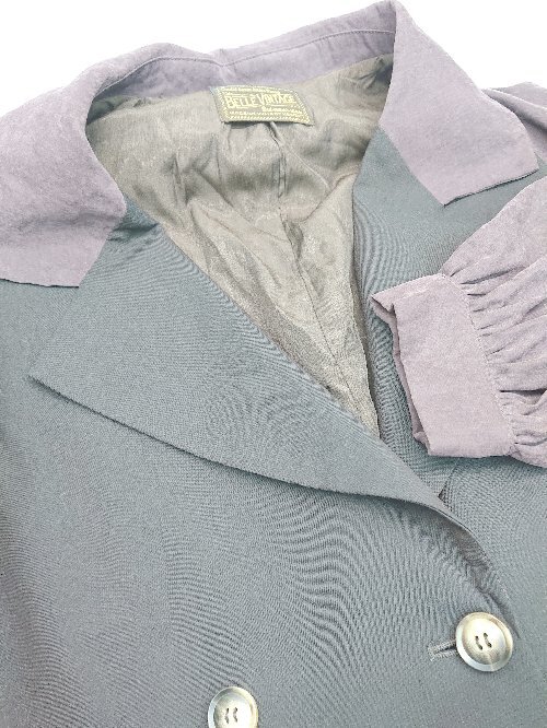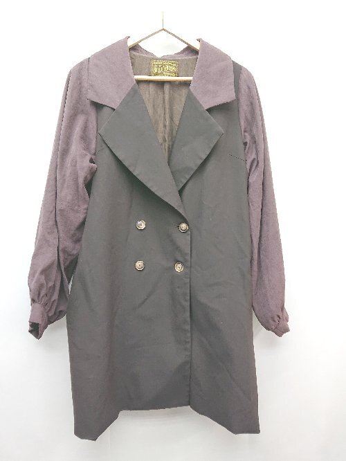 ◇ belle vintage 袖スウェード系 膝丈 長袖 トレンチ コート サイズF ブラウン系 レディース P