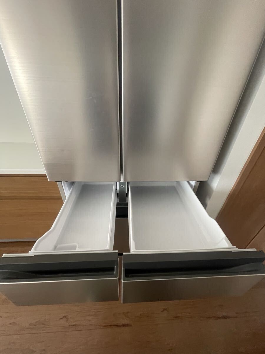 □正面にエクボ、その他お写真には映りきらない小キズ、落としきれない汚れ等ございますが、冷え、自動製氷、動作バッチリのお勧め商品です!