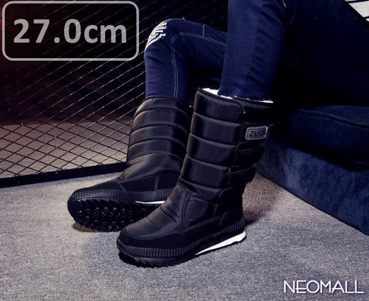 メンズ スノーシューズ 【866】 27.0cm ブラック ムートンブーツ スニーカー ウィンターブーツ 裏起毛 防水 防寒 防滑 冬用靴 綿靴