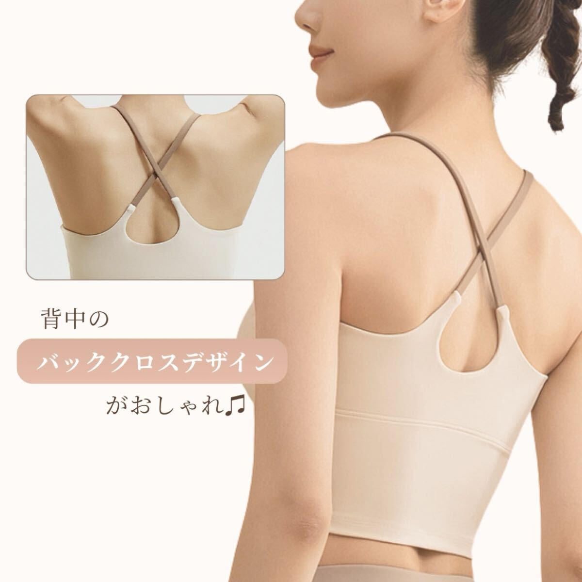 おしゃれにクロスした肩紐が、後ろ姿をキレイに見せます。