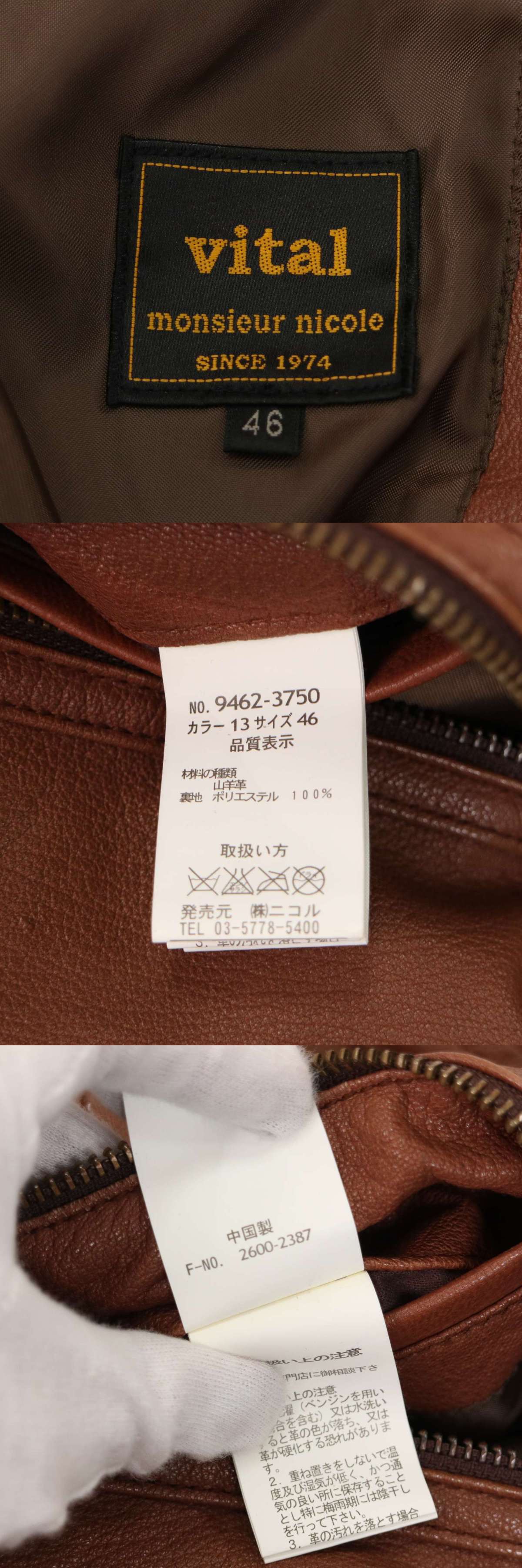 vital MONSIEUR NICOLE ムッシュ ニコル 秋冬 山羊革★ ゴート レザー ハイネック ライダース ジャケット Sz.46 メンズ