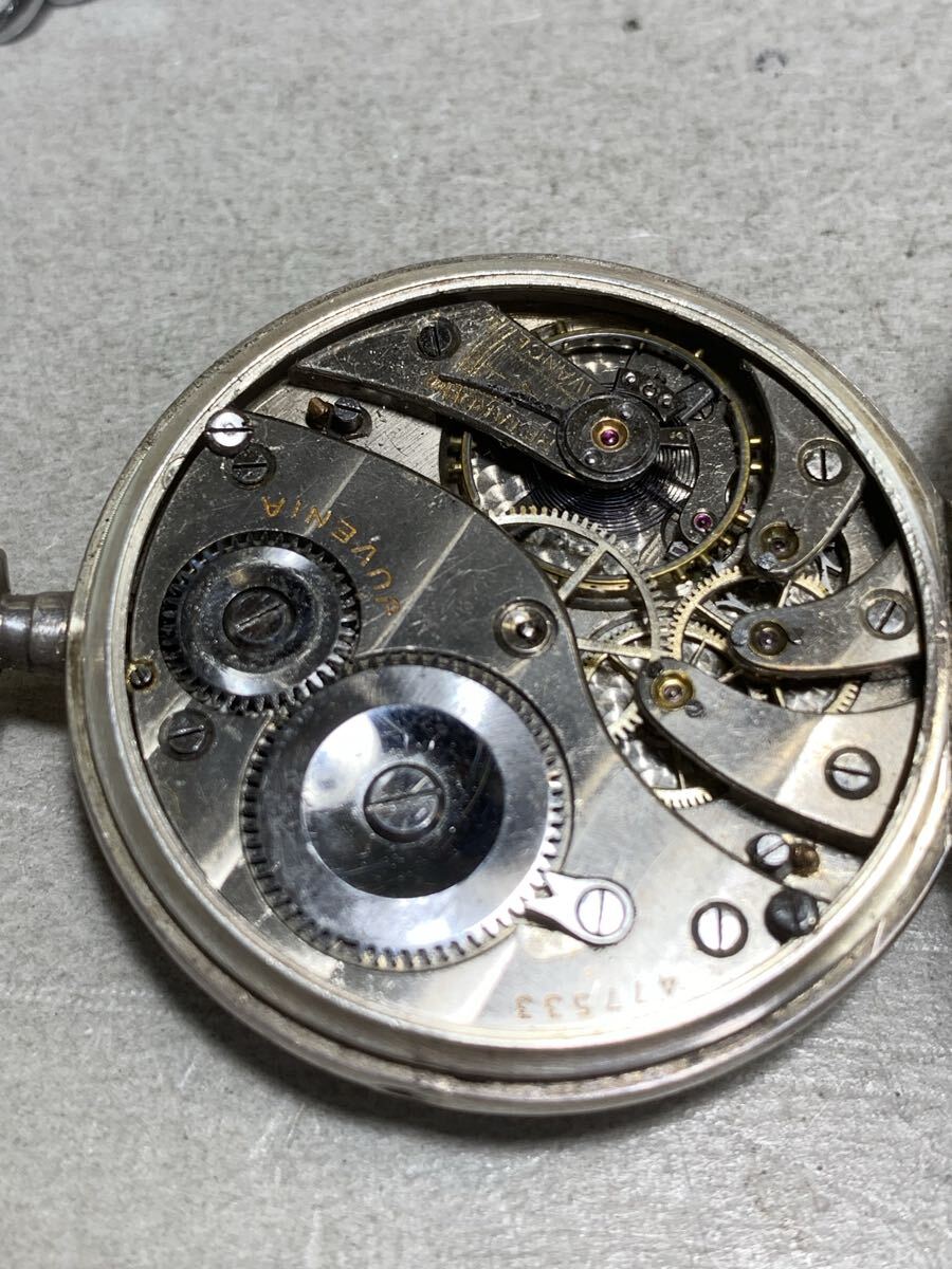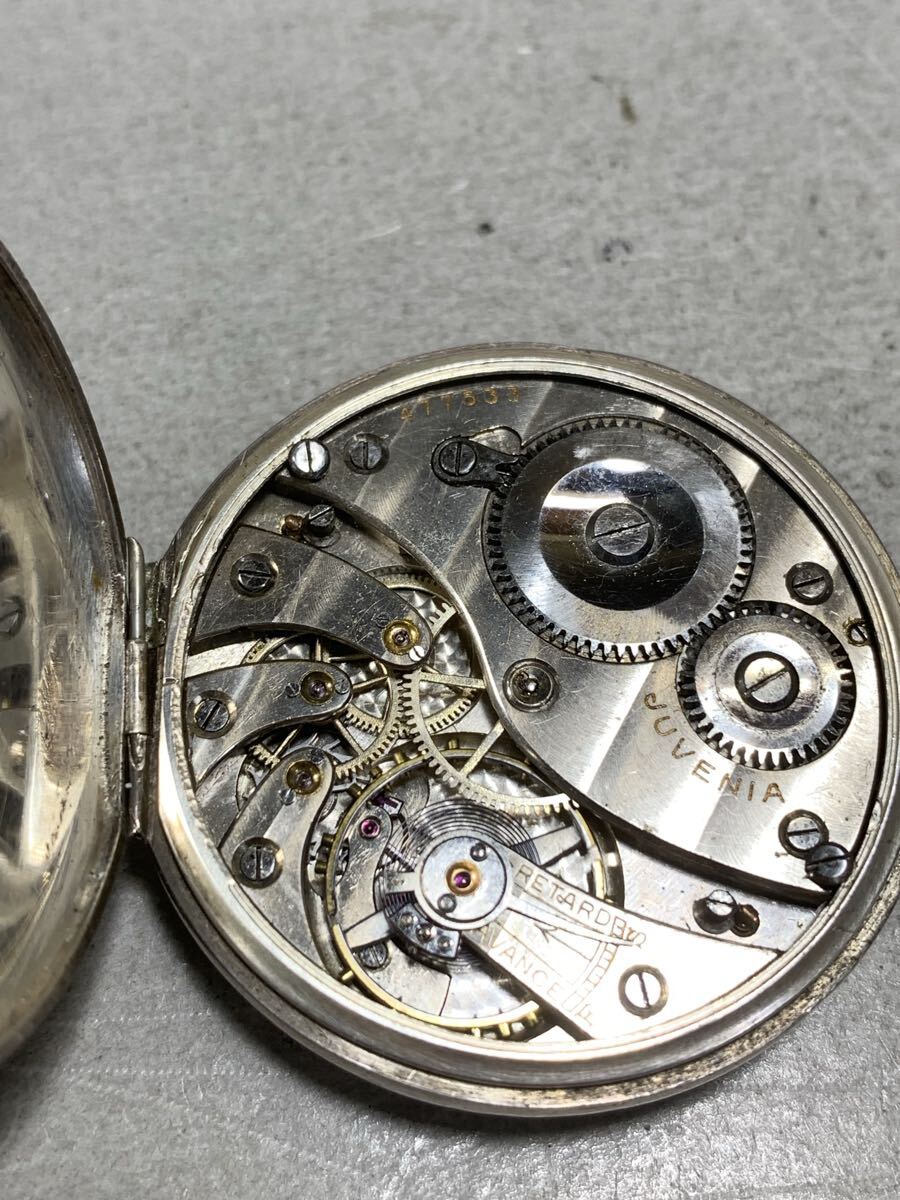 ブランド・メーカー : ジュベニア(スイス)の手巻き懐中時計です。ケースは銀900無垢でケース外径はリュウズ除いて約41.0ミリ、厚さは約10.1ミリです。