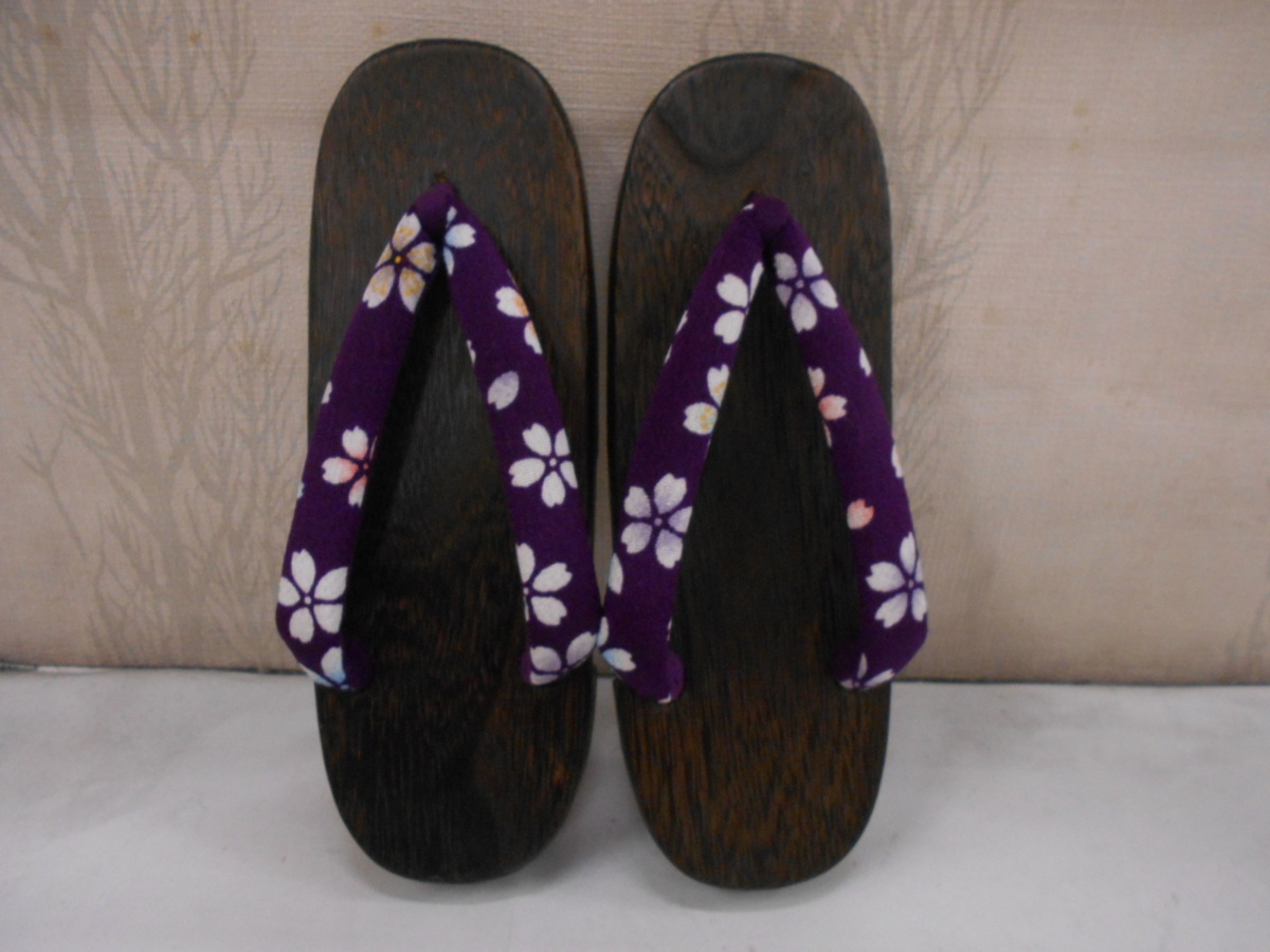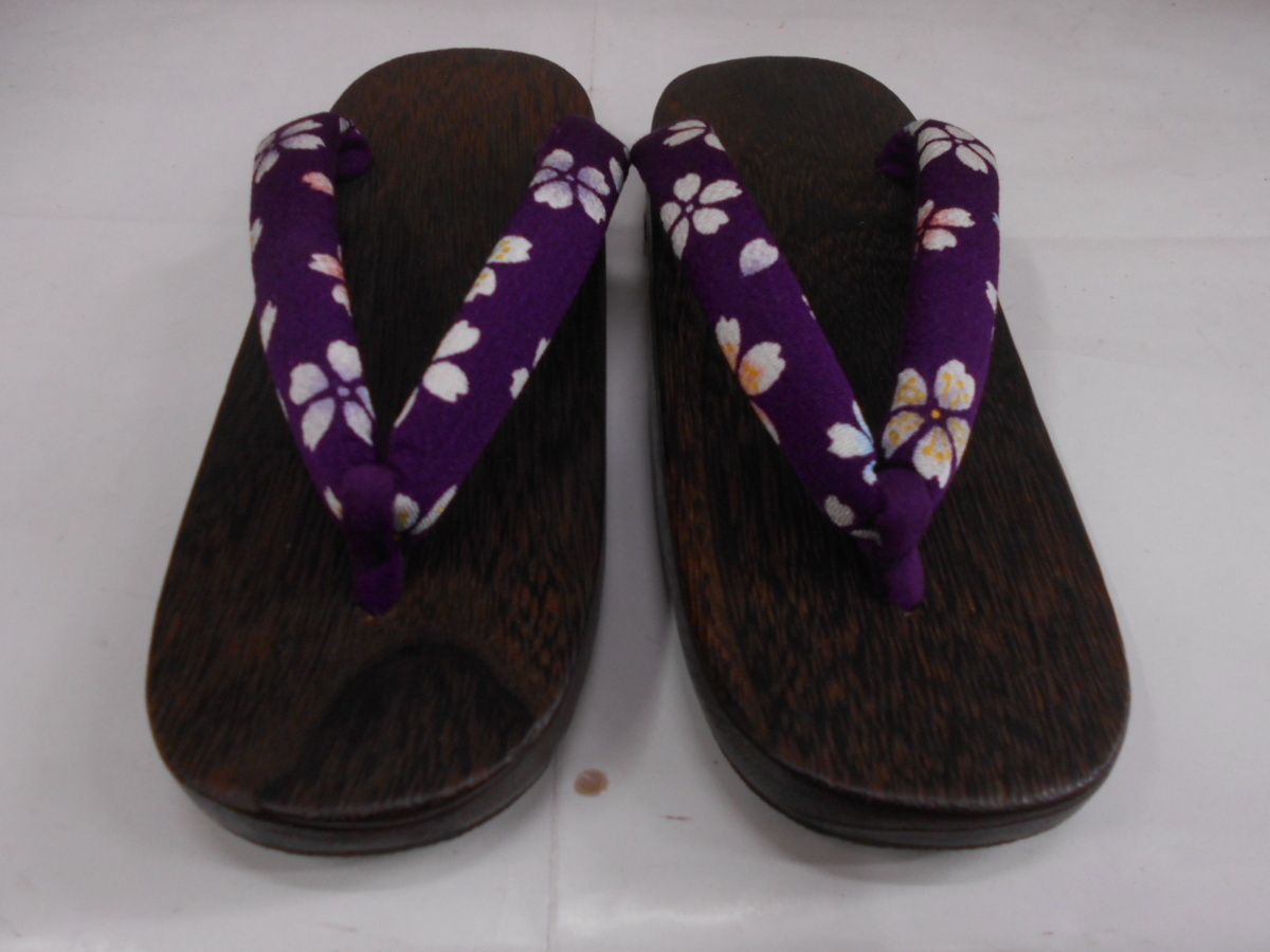 SALE定価¥3520→¥2145雪下草 [オリジナル] 桐下駄 焼き右近 ちりめん紫柄鼻緒 23.5~25.5cm