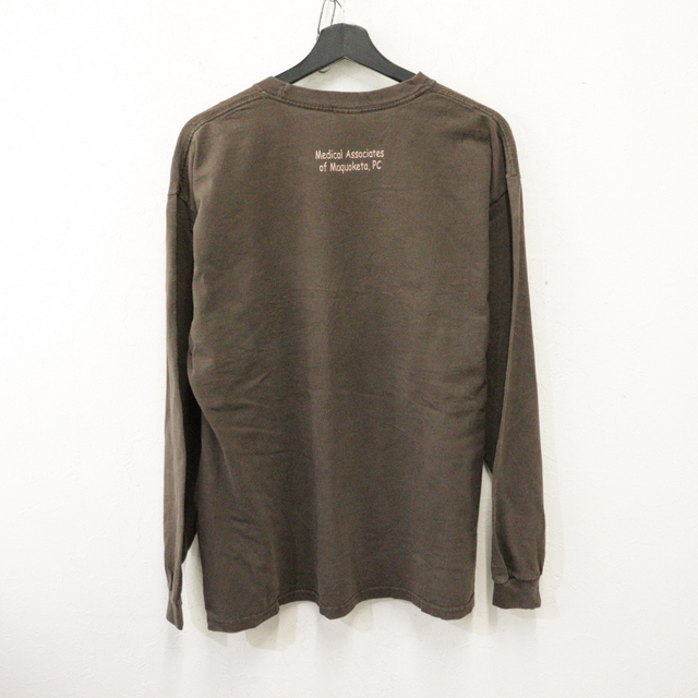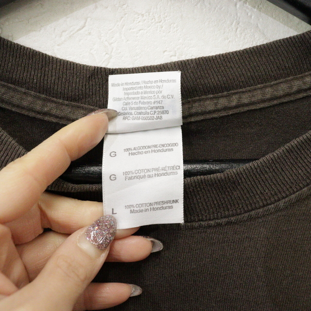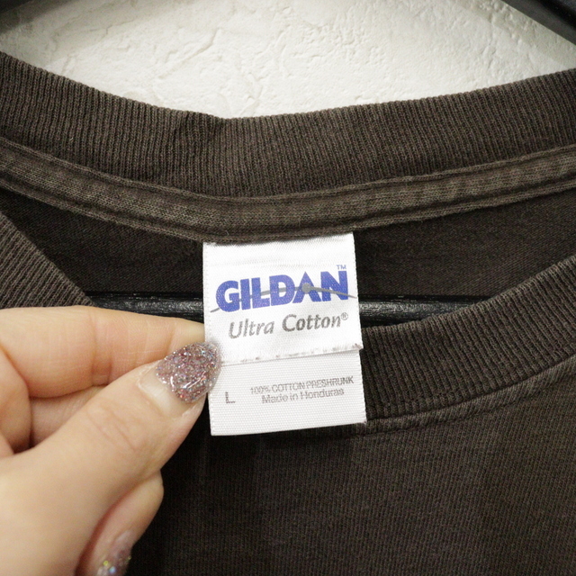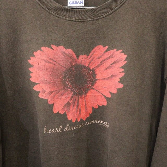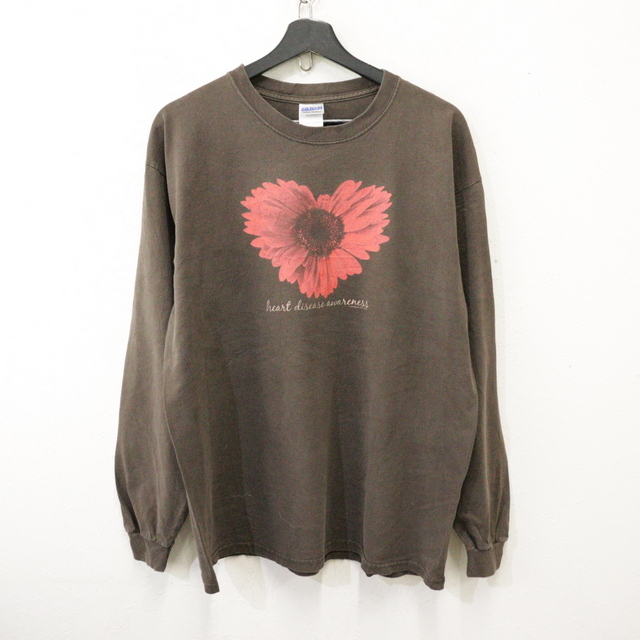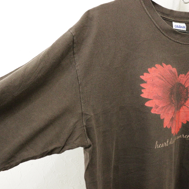 商品名 U168 2000年代製 ギルダン 長袖Tシャツ■00s 表記Lサイズ ブラウン ロンT フラワー アート メッセージ アメカジ ストリート 古着 激安