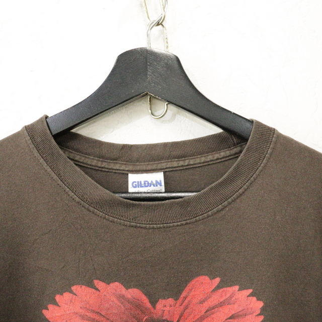 U168 2000年代製 ギルダン 長袖Tシャツ■00s 表記Lサイズ ブラウン ロンT フラワー アート メッセージ アメカジ ストリート 古着 激安