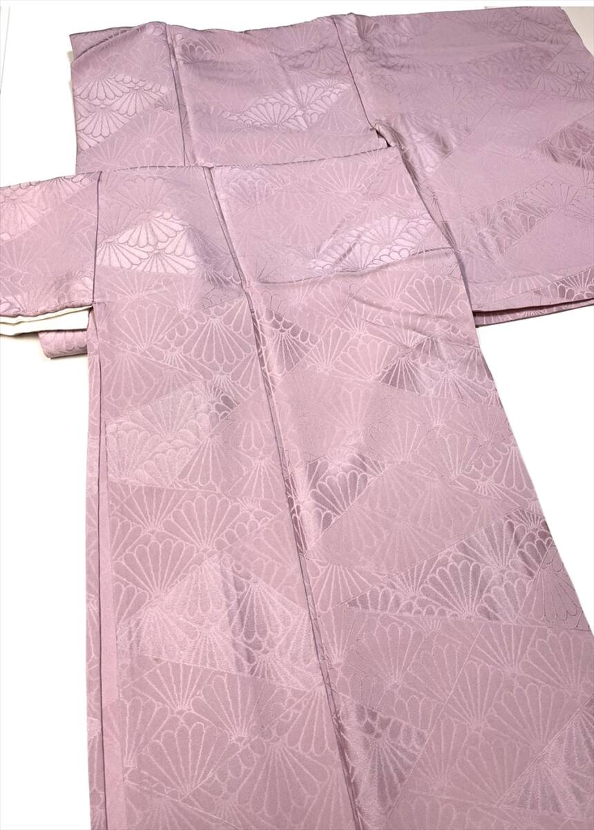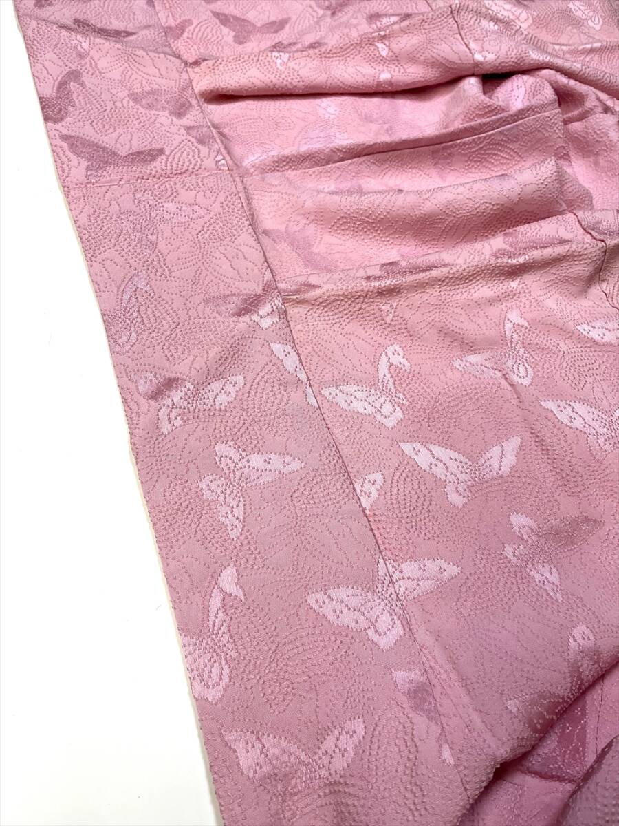 リサイクル着物 色無地 2枚まとめて ピンク 薄紫 ふくれ織 蝶 菊 単衣 着用可能 リメイク 素材
