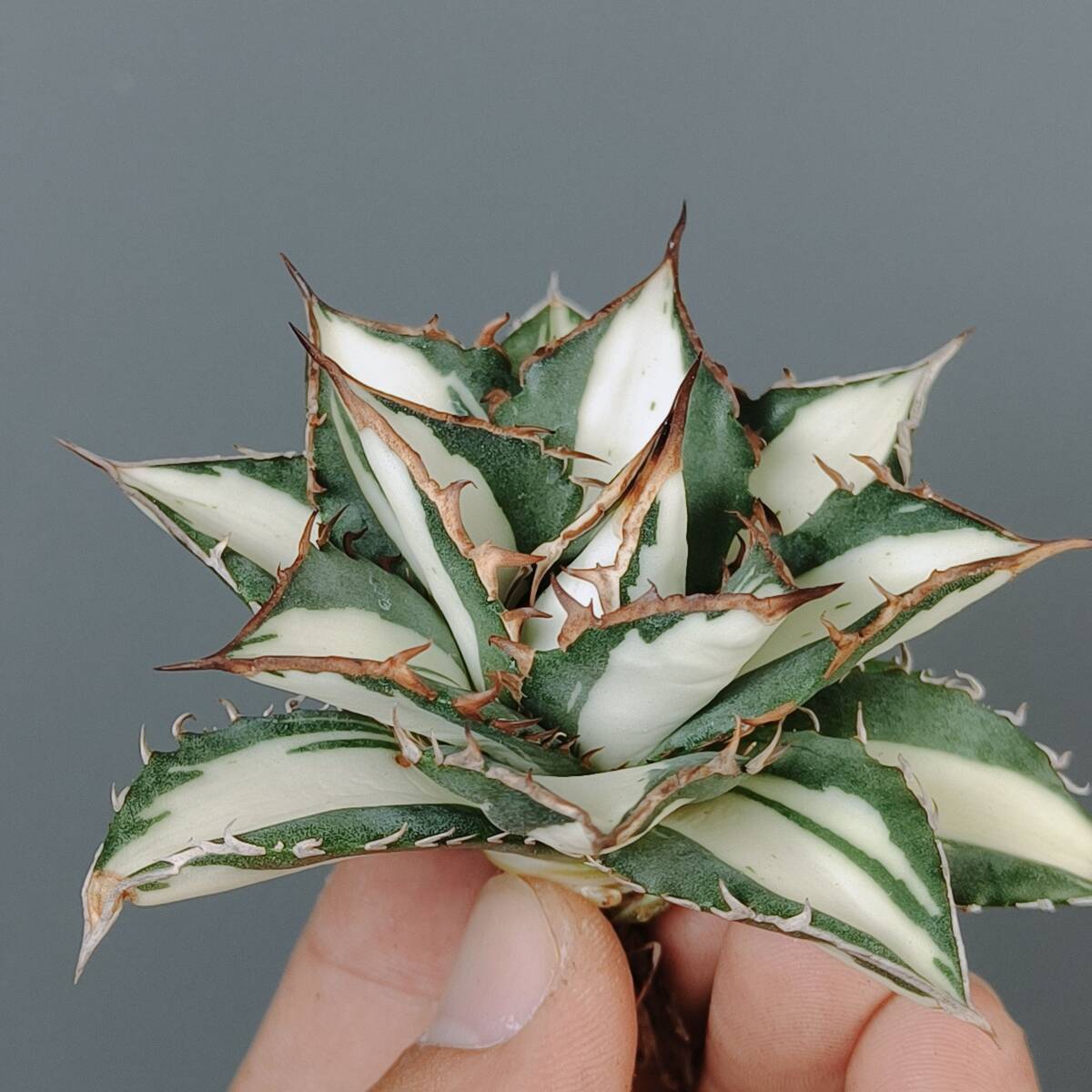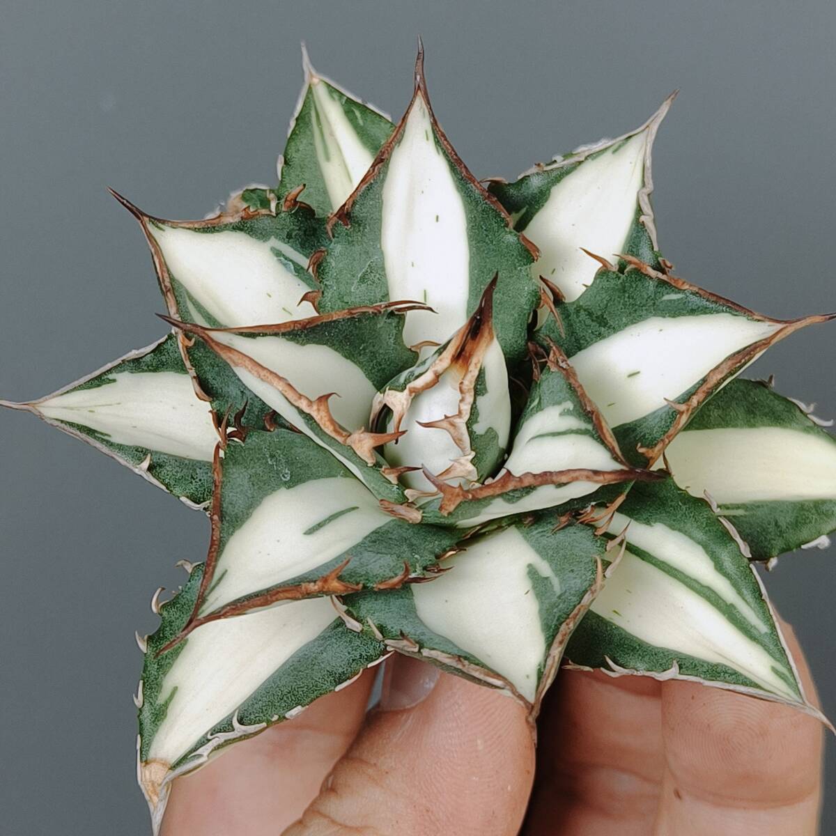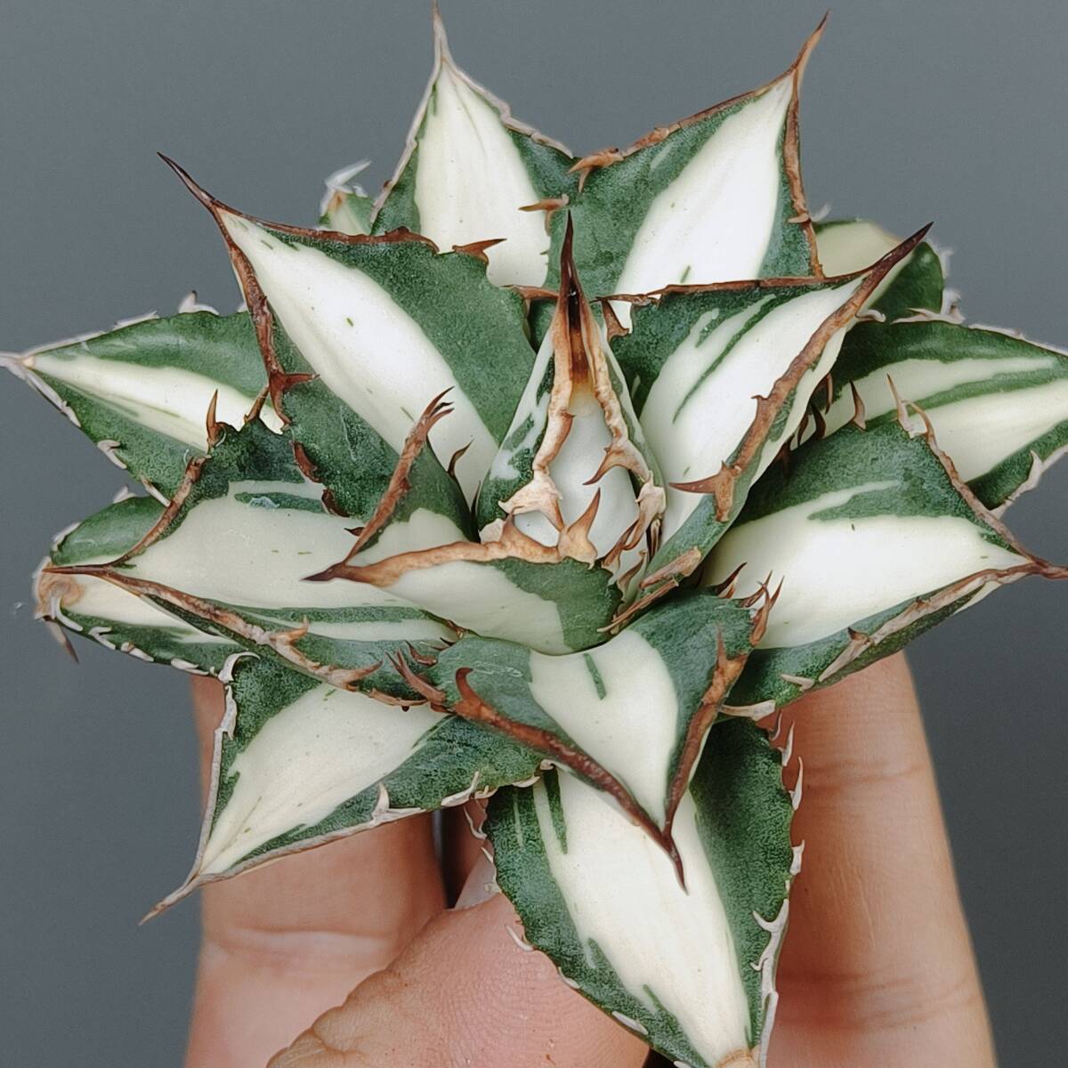 【龍園觀】No.S46 'SSS級' アガベ チタノタ '太陽神錦' 極白中斑 ☆希少☆ ☆短広葉☆ 極上株