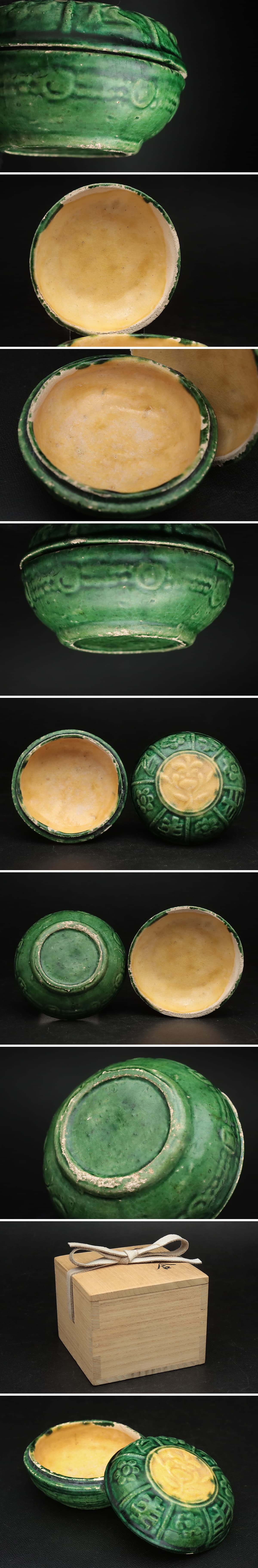 | ◆ 時代茶道具【交趾 橘/花押/書付】交趾香合 径7.6cm 共箱附・紫聖雪斎・交趾陽刻花文香合・香盒 三彩 古煎茶道具 中国古玩 ◆