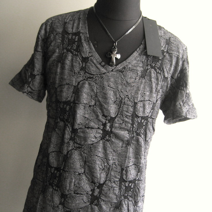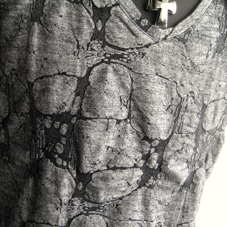 ■イぼこぼことした凹凸のあるウォール(壁)柄ジャカードジャージーを使用した半袖Vネックカットソー