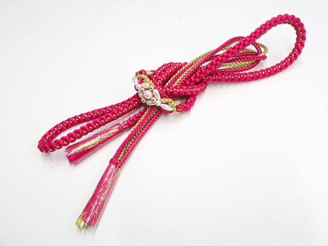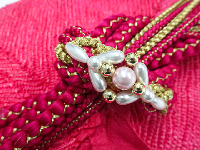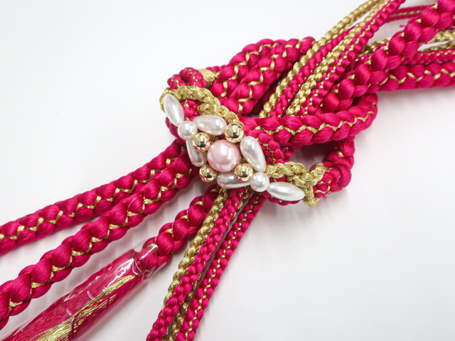 《京都一輝堂》和装小物 帯締め帯揚げセット 振袖用 丸組 総絞り 金糸 飾付 美品 25w10-13234