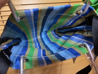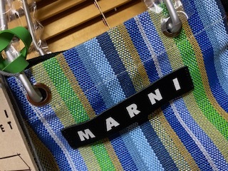 [MARNI FLOWER CAFE] で1番人気のナイロン製のショッピングバッグ「ストライプバッグMINI」です。