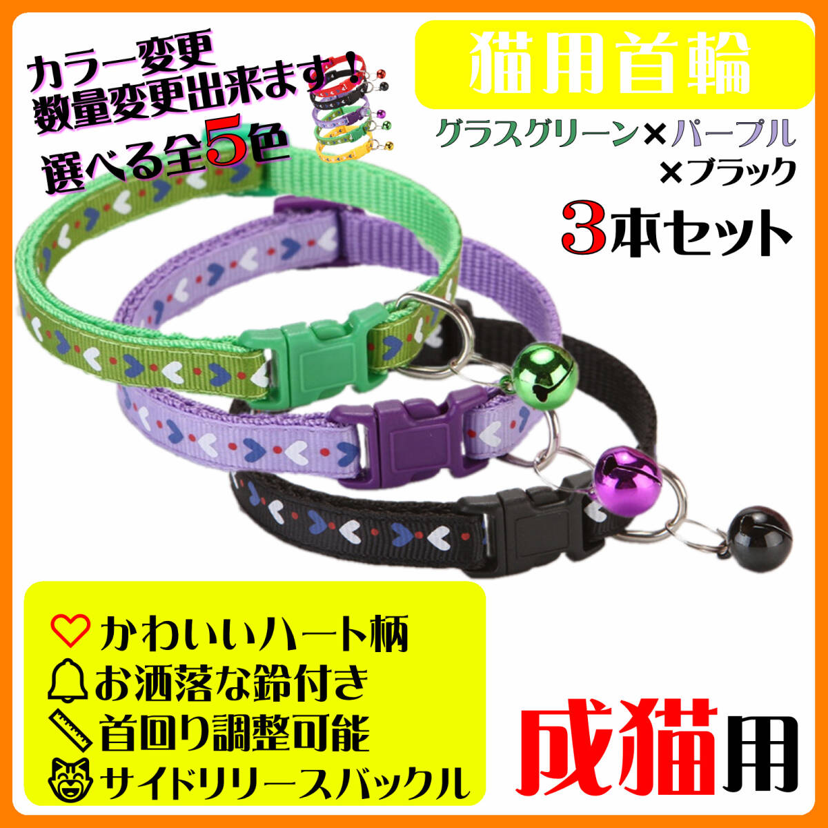 | ★☆(C177-1) 猫の首輪 成猫用 ハートのデザイン可愛い猫用首輪【3本セット】☆★ | |