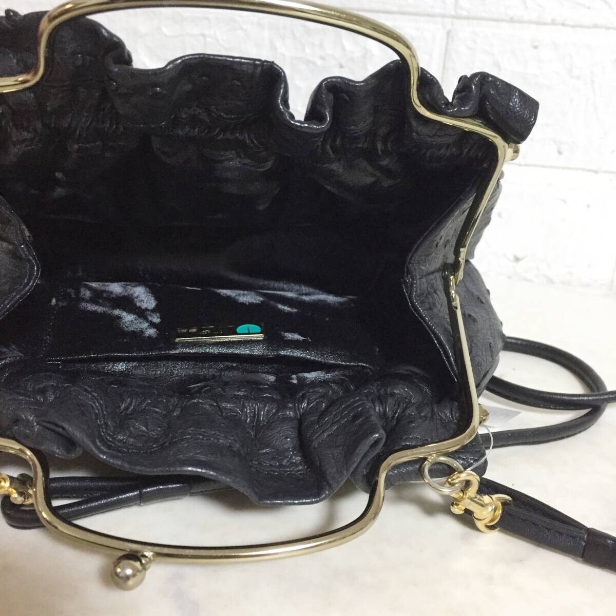 no34756 高級 ゆう美 本革 レザー エキゾチック オーストリッチ ダチョウ がま口 フォーマル 斜め掛けショルダー バッグ