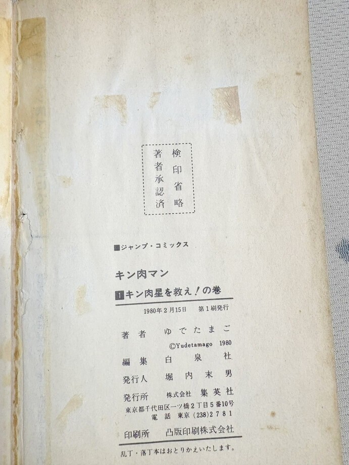 キン肉マン 初版 ゆでたまご 週刊少年ジャンプ 1巻 ダメージあり    3KA玩40