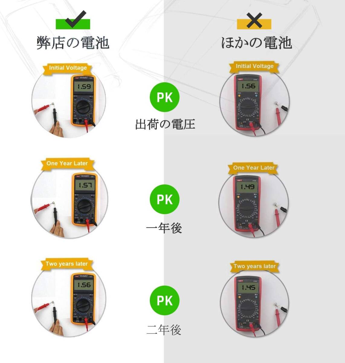 「耐久性と信頼性」SR920SW酸化銀電池は優れた保存性と信頼性を持っています。 酸化銀などの組み合わせにより、化学的に非常に安定しています。1.55V+の高い電圧を持ち、長期間使う、耐久性に優れた、電量や電圧が十分です。3年間の貯蔵寿命