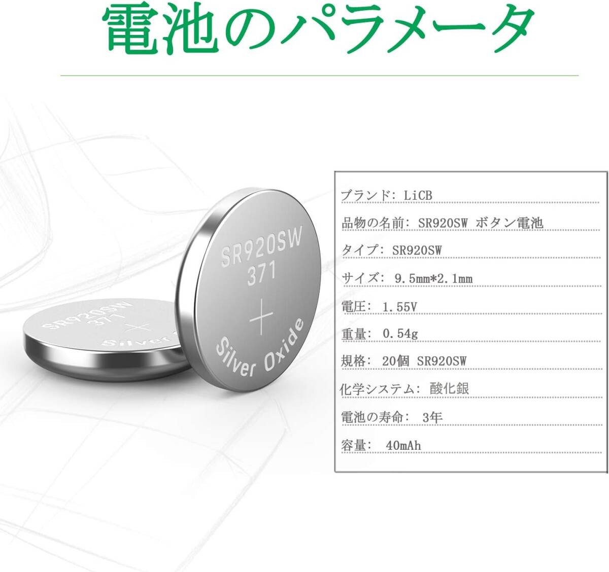 LiCB 20個 SR920SW ボタン電池 時計用【SR920sw、371 、LR920、AG6、370相当品】