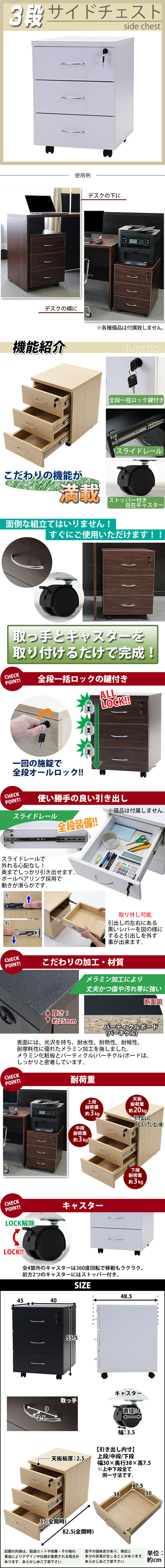 | 商品名 | 送料無料 3段 サイドチェスト 半完成品 約W40×D48.5×H55.5 鍵付き キャスター付き オールロック サイドキャビネット サイドワゴン デスクワゴン デスクチェスト 3段ワゴン オフィスワゴン デスクキャビネット 会社 事務所 脇机 ホワイト sidechestcd08 |