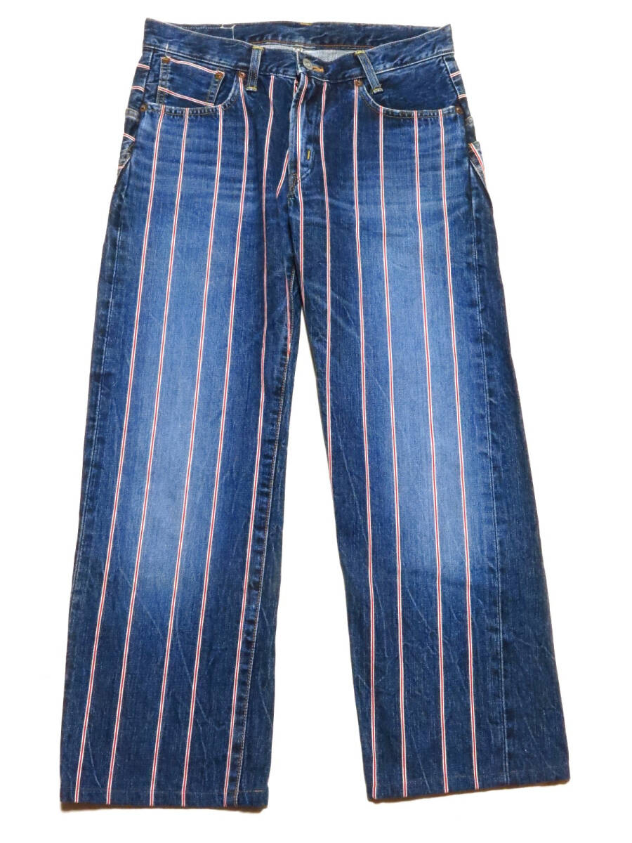 EDWIN エドウィン ストライプデニムパンツ 日本製 セルビッチ 505SS5 希少 W30相当(実寸78cm) (出1088)■R1
