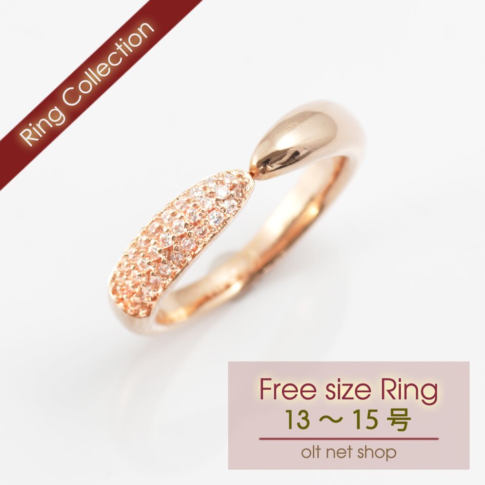 13号~15号 調整可能リング / 新品 指輪 K18GP フリーサイズ フォークリング 18金 ピンクゴールド レディース ダイヤ CZ プレゼント 女性