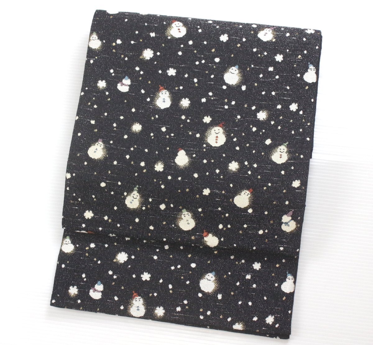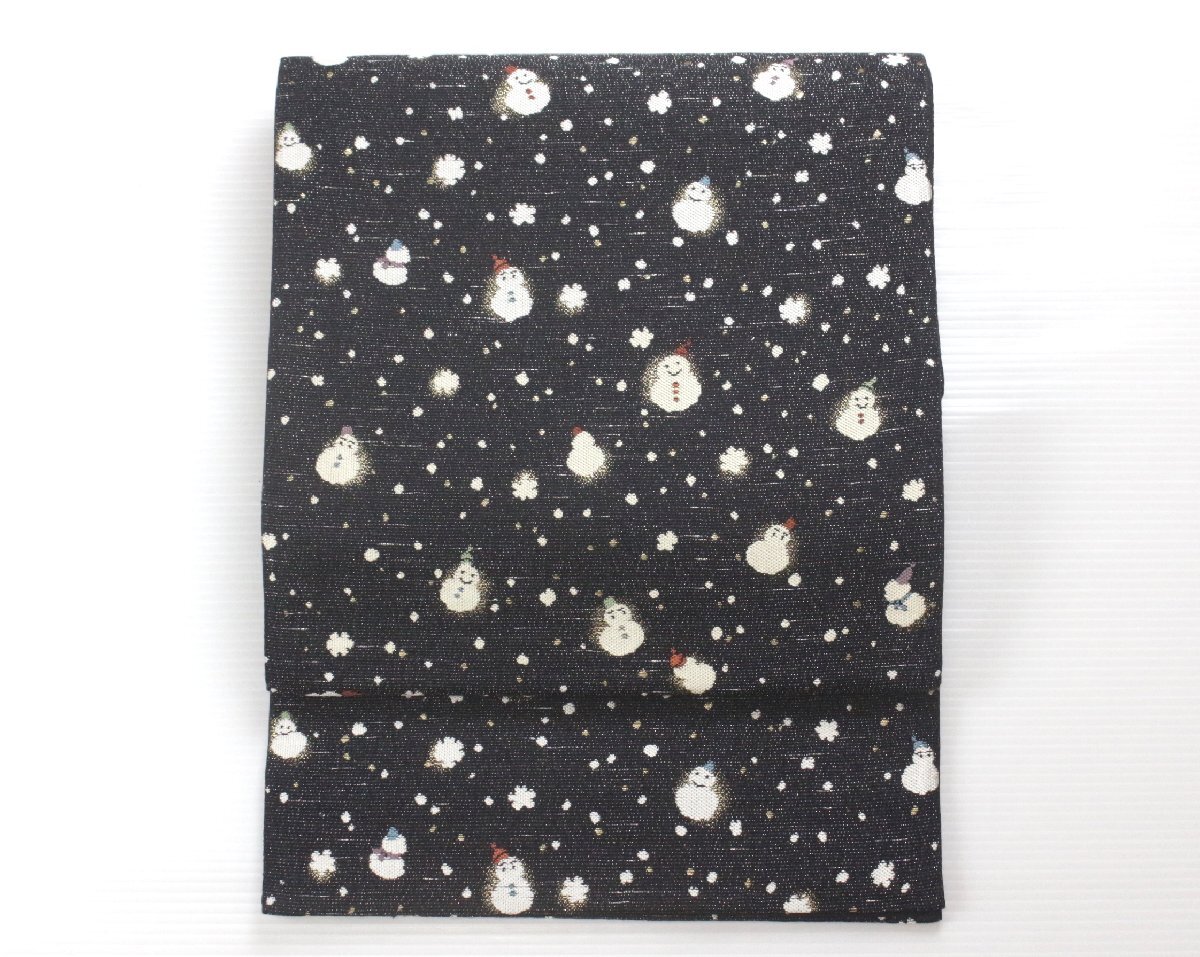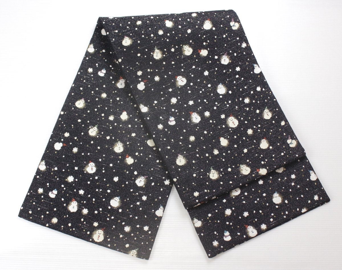 可愛らしい雪だるまの文様が織り出された、冬の装いを彩る袋帯のご紹介です。 夜空のような深みのある地に、降りしきる雪と小さな雪だるまたちが散りばめられ、遊び心と季節感の漂うお品。 細やかな織表現により、雪だるまの表情や帽子の色づかいが柔らかく描かれ、和装姿にさりげないアクセントを添えてくれます。キラリと光を含む糸が生地に奥行きを与え、上質な帯ならではの風合いをお楽しみいただけます。 小紋や紬などのカジュアルな装いに合わせていただきますと、冬のおでかけやお稽古、観劇などにも愛らしく映え、装いを温かく演出してくれることでしょう。 季節感のある帯として、一本お持ちいただくと大変重宝いたします。どうぞこの機会にご検討くださいませ。 ※撮影時の部屋の照明によって画像の色に若干の差がございます。色味に差がございますことをご了承のうえご検討下さいませ。 …状態… 締め跡あり。その他状態良好。 ※全くの新品ではございませんので、記載のない変色やスレ、ヤケ、その他僅かな難がある場合がございます。そのような理由でのキャンセルはお受けできませんので、ご了承の上ご検討お願いいたします。 |