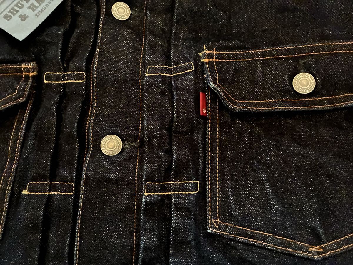フルカウント デニムジャケットLot 2102XXの出品です。 15.5ozのヘビーオンスであり耐久性に優れた商品です。です。サイズ表記は38です。実測サイズは着丈60cm・身幅54cm・袖丈59cm・肩幅46cmです。多少の誤差はお許しください。状態については、着用回数が少なく真紺で生地は硬く、特筆すべきダメージや汚れもなく美品です。今後末永く着用していただけます。安価での出品ですので、お探しの方はこの機会に是非いかがでしょうか。落札後はノークレーム・ノーリターン・ノーキャンセルでお願いします。なお、発送はお得なお手軽あ配送宅急便を予定しておりますので宜しくお願いします。