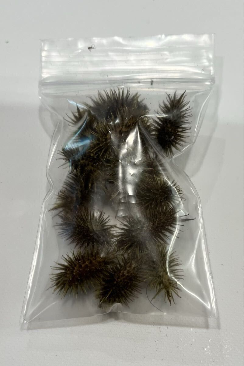 最近空き地がなくなってきたせいか、めっきり見なくなったひっつきむし事オナモミの種です。よく千切ってはなげて遊んで服から取れなくなるあれです。セーターにつくととても悲惨な目に遭います。意外と漢方薬や虫刺されの薬になったり、実を食べたりもできるらしいです。