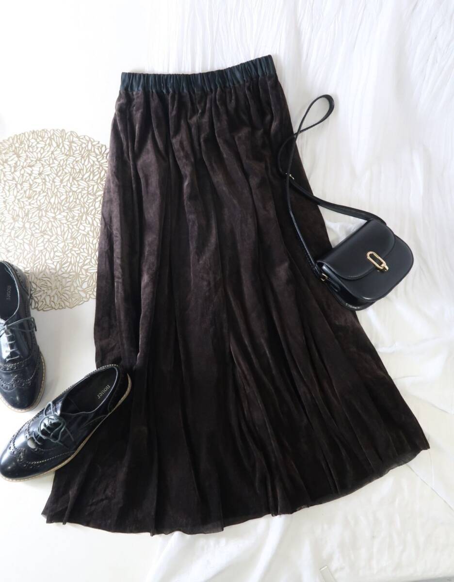 超美品☆ミズイロインド mizuiro ind☆ウエストゴム ベロアロングスカート 日本製☆E-M 6879