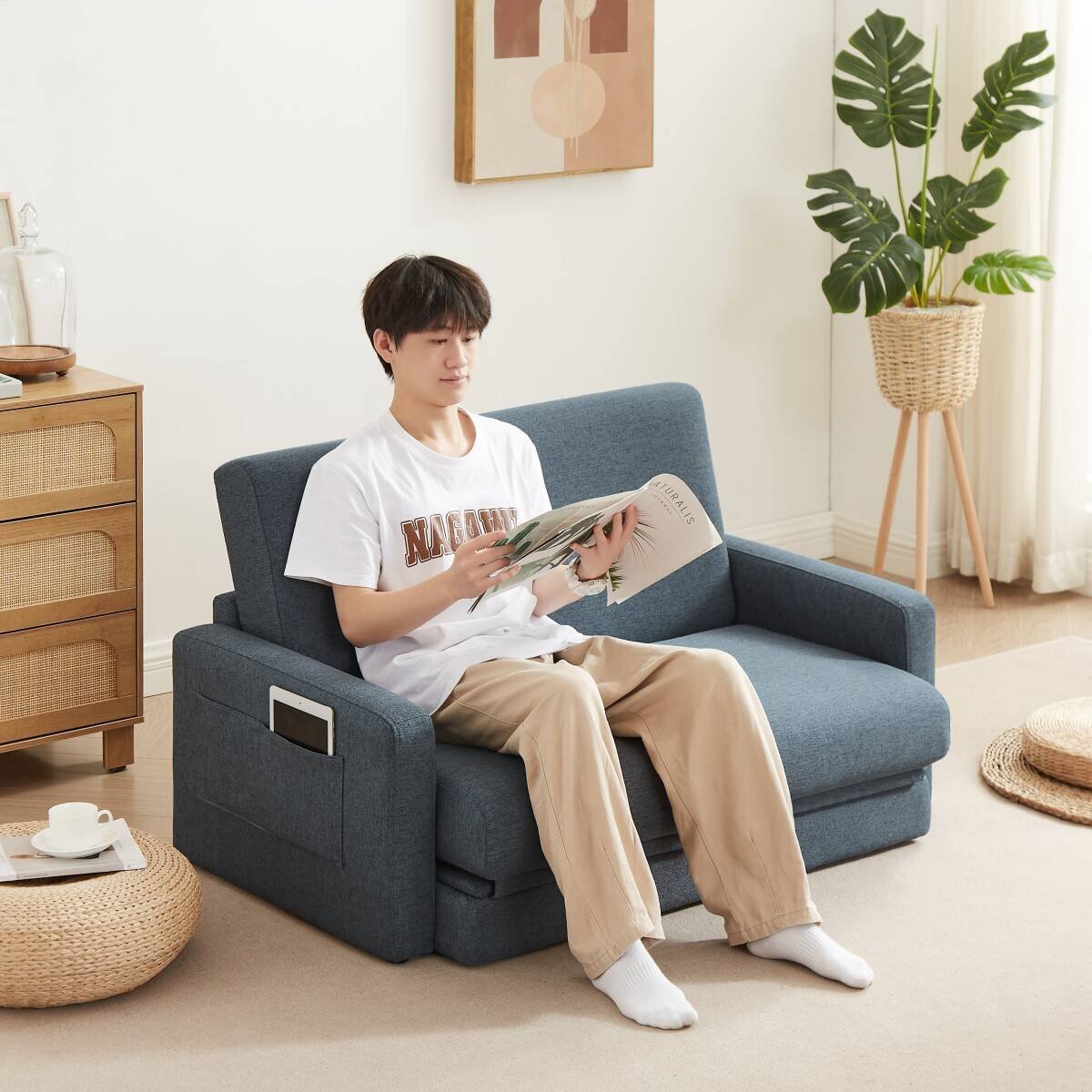 ソファ 2人掛け 収納付き ファブリック 両側に肘掛け付き 木脚外し可能 ローソファ コンパクト ひとり暮らし
