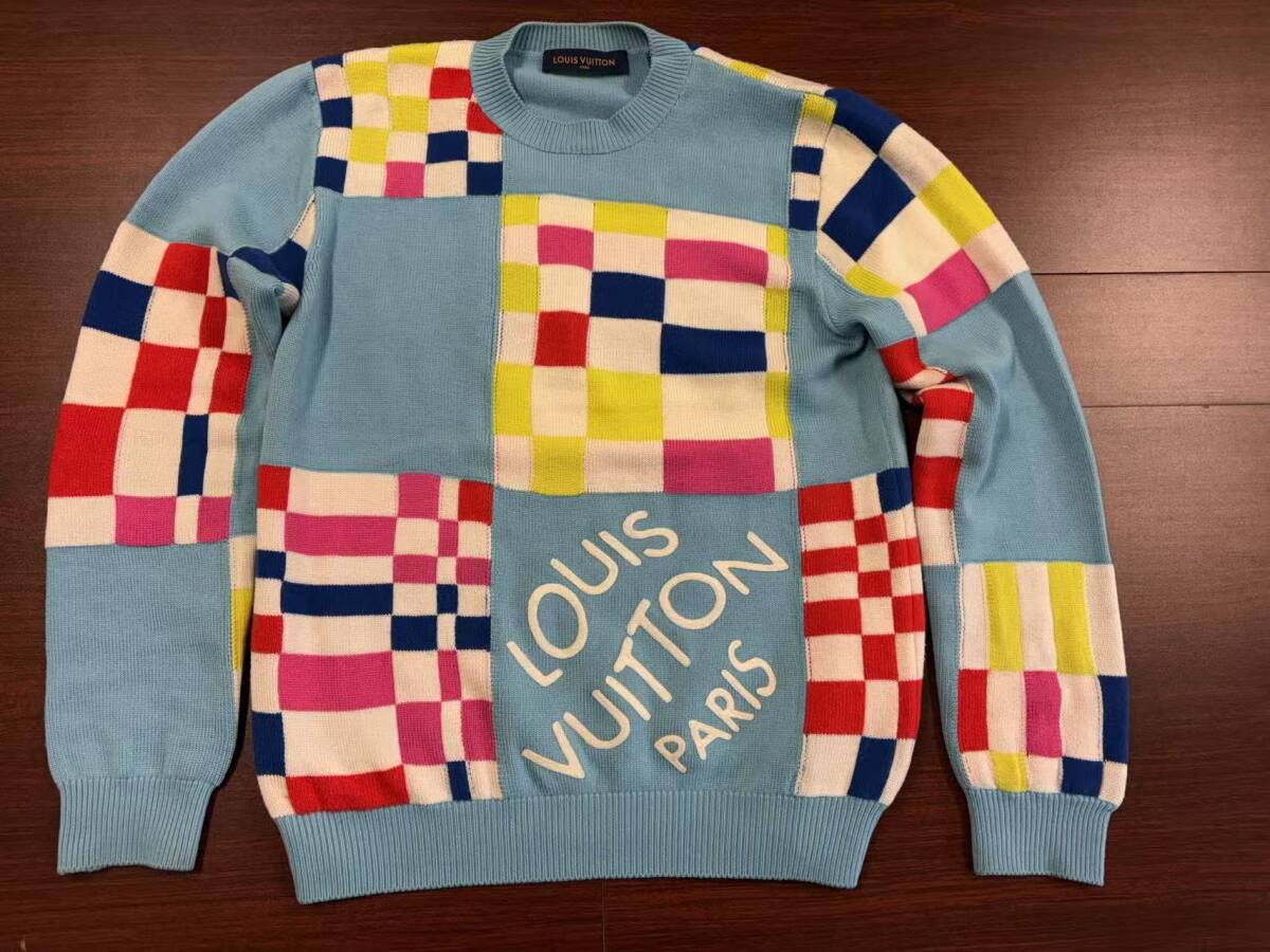 【正規品・希少】LOUIS VUITTON ルイヴィトン LVロゴ カラフルチェック ニット セーター Mサイズ 未洗品 人気モデル
