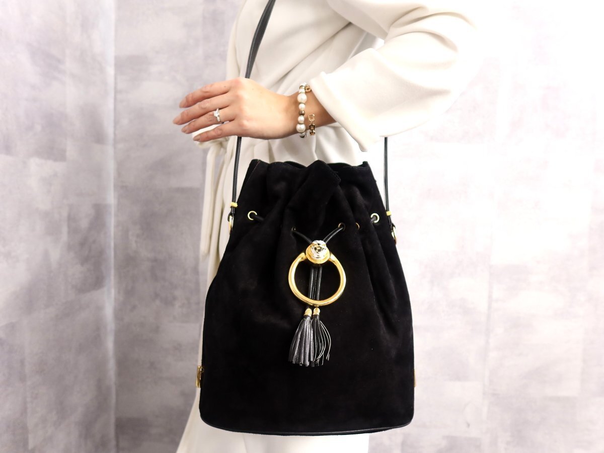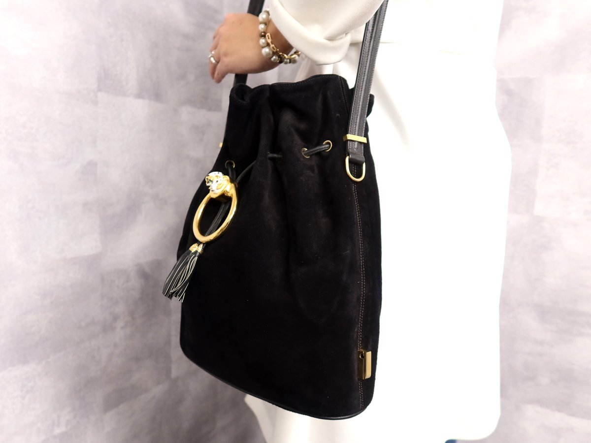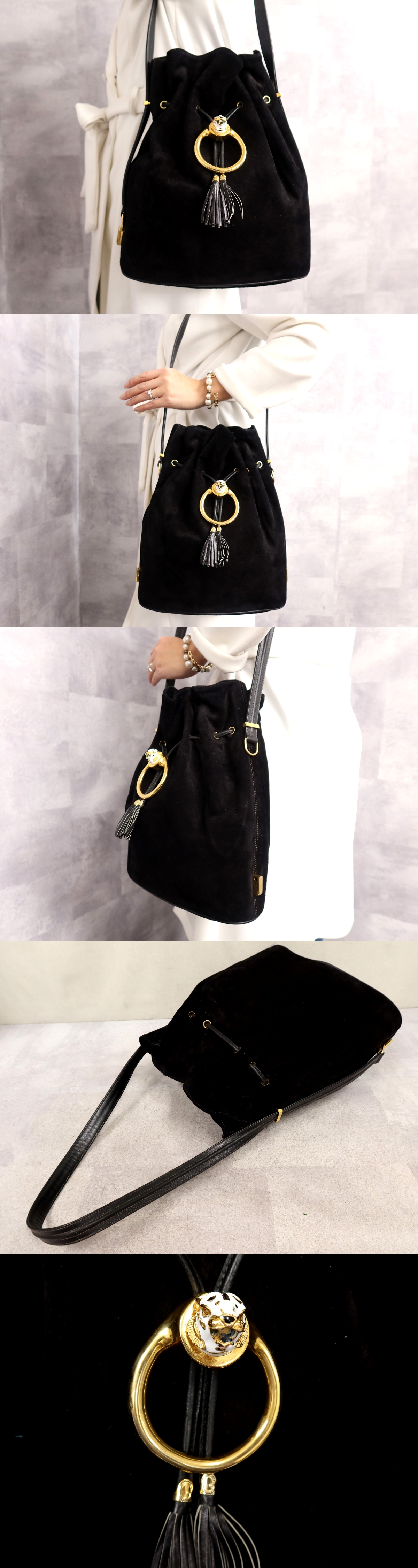 ●超美品●オールド グッチ●タイガーヘッド●スエード カーフ レザー 本革●巾着 ショルダー バッグ●黒●G金具●ヴィンテージ●Js63245