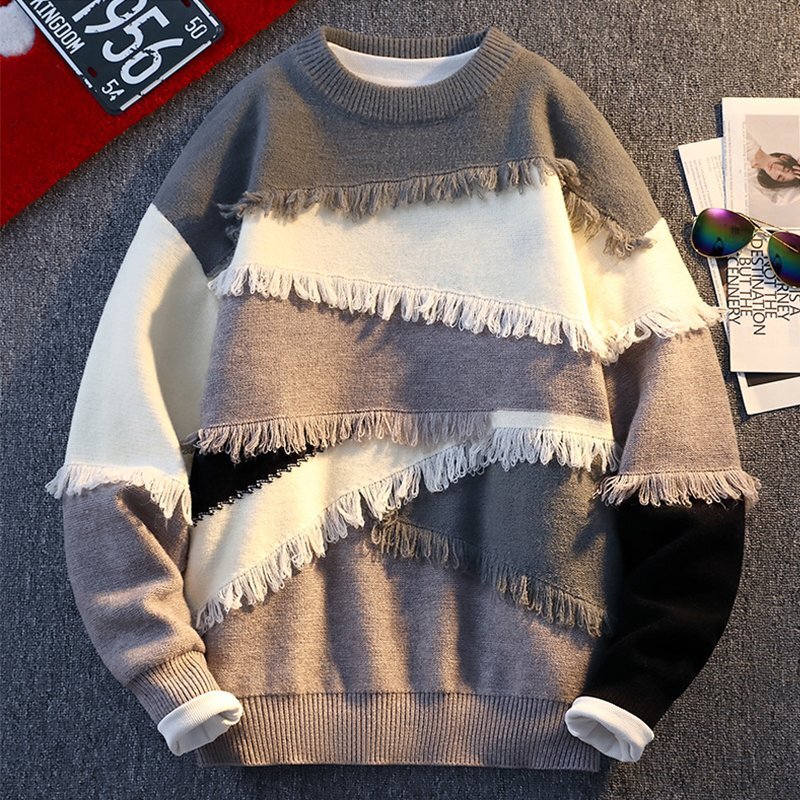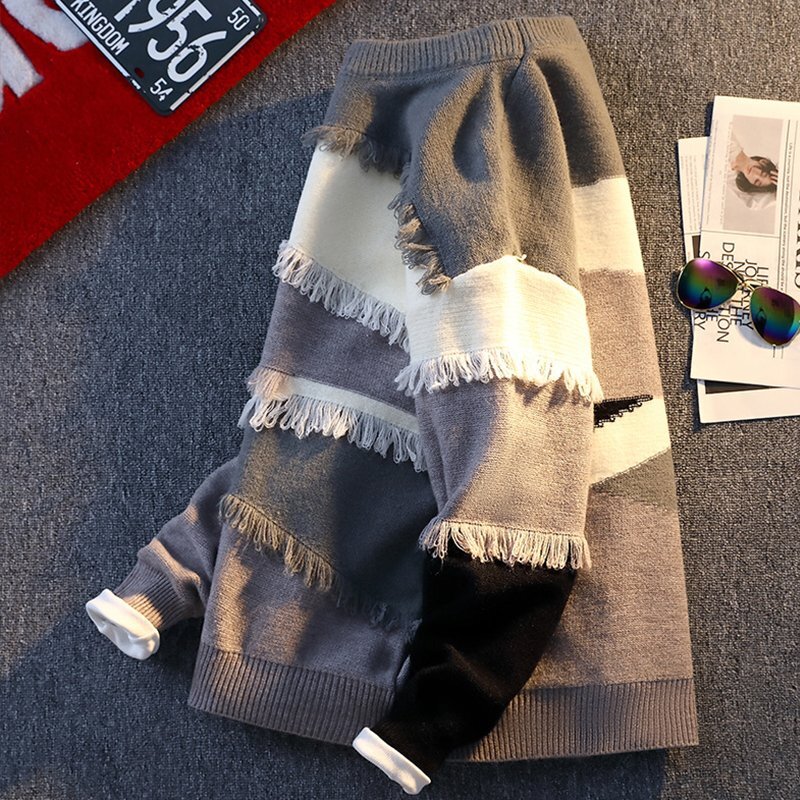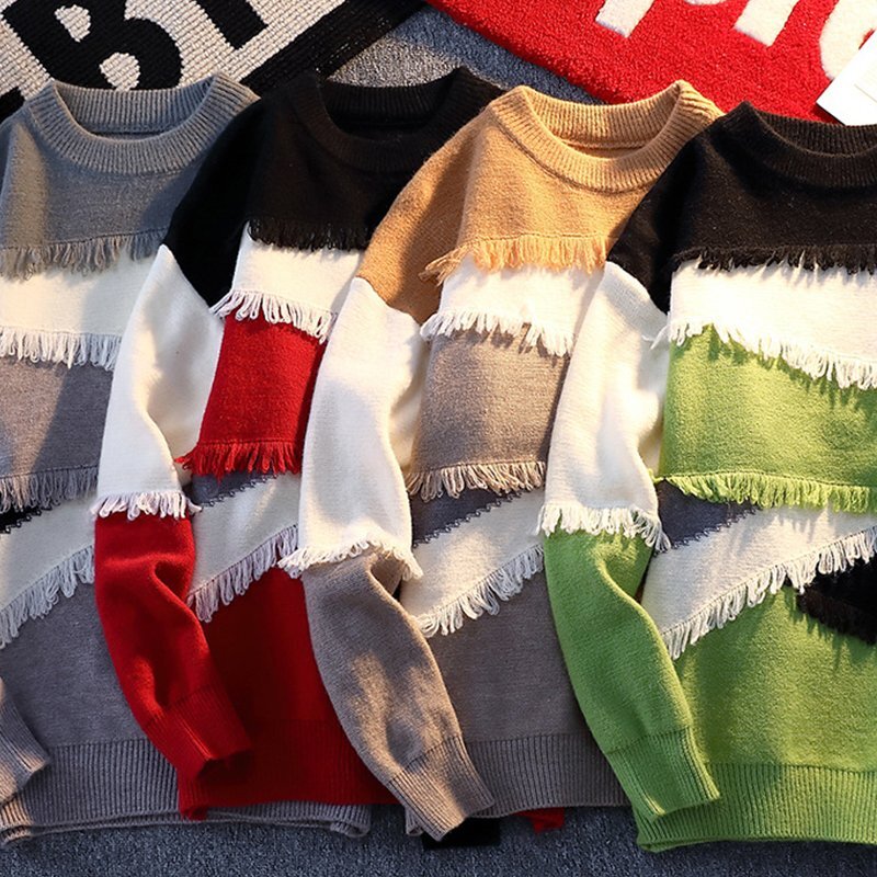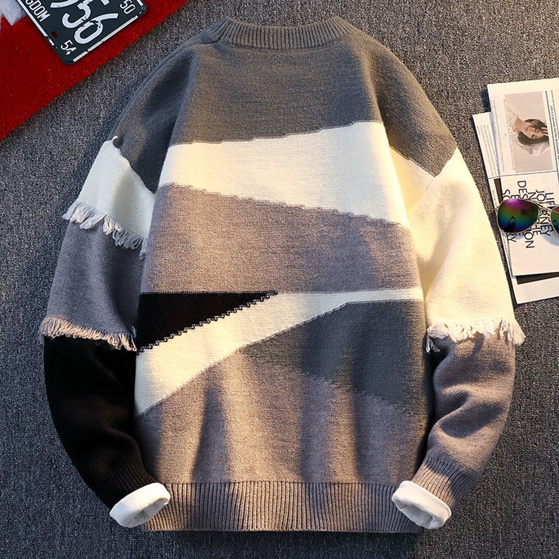 個性◆イタリア製 配色デザイン ウール混紡 ニット メンズ 保温 冬用 セーター L/48 fz149