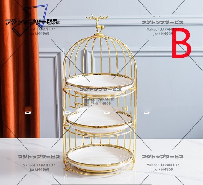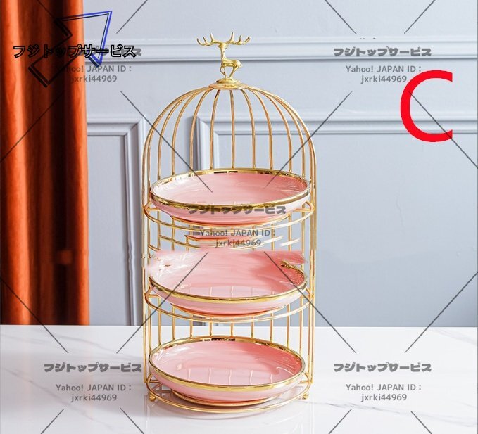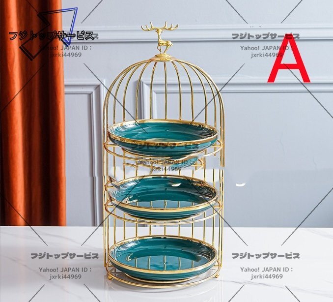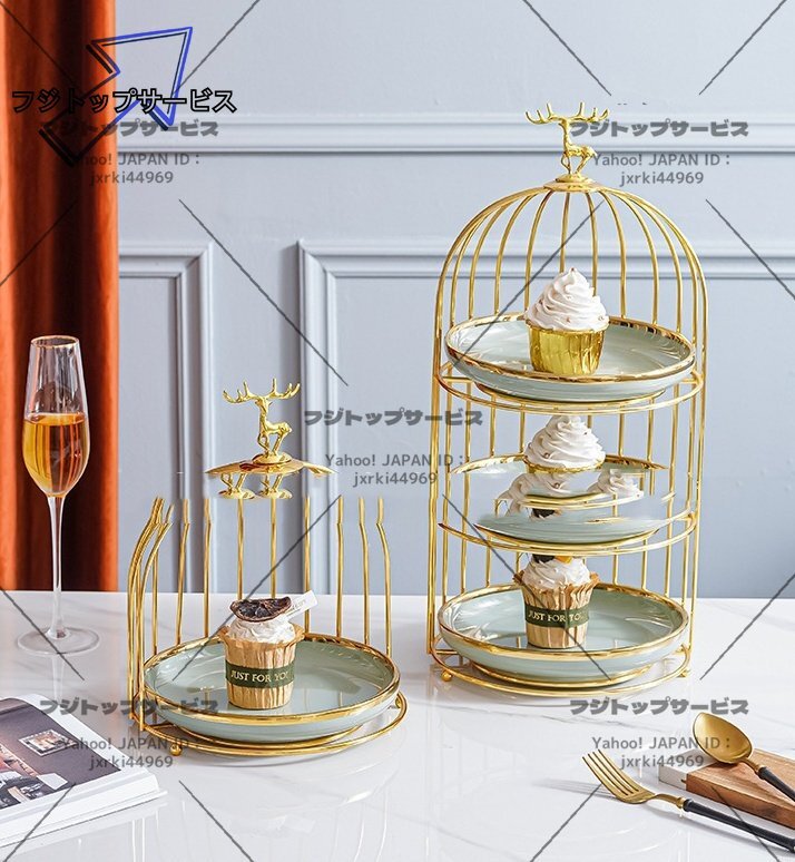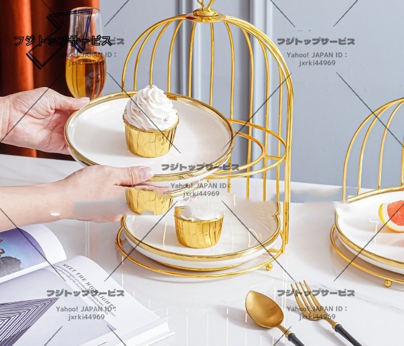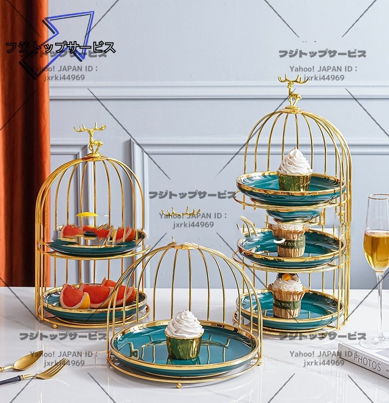 美品★北欧ケーキ スタンド プレート3段セット アフタヌーンティー フルーツ鳥籠 トレー 皿 4色から選択可能
