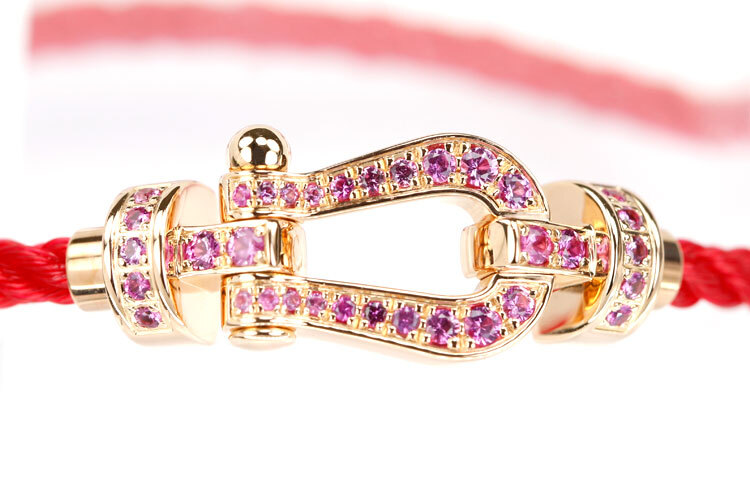 コメントフレッドの、ヨットに使われるケーブルとシャックルをイメージしたデザインが爽やかでエレガントなフォース10のブレスレットです。色鮮やかなピンクサファイアと深みのあるレッドのコードの組み合わせがフェミニンなお品です。