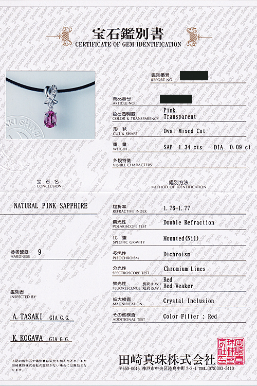 商品名タサキ 田崎真珠 ピンクサファイア ペンダントトップ ダイヤモンド Pt900 TASAKI