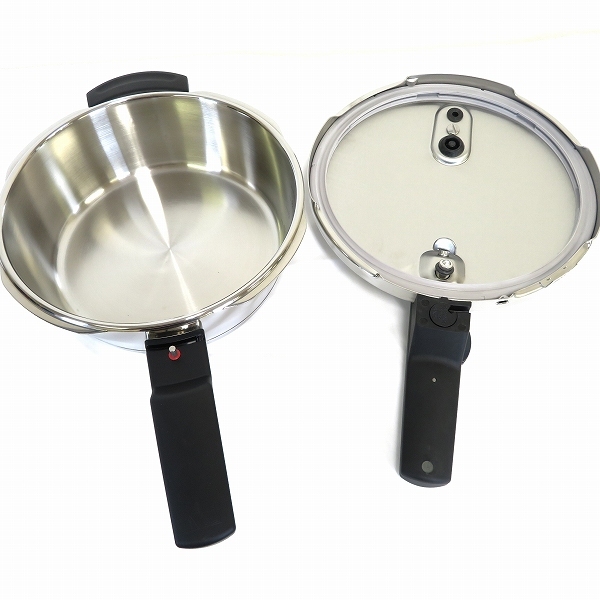 ●コンディション備考:圧力鍋は未使用ですが、持ち手部分に微かな汚れ、箱や梱包材にダメージがございます。全体的には使用感は感じられない美品となります。