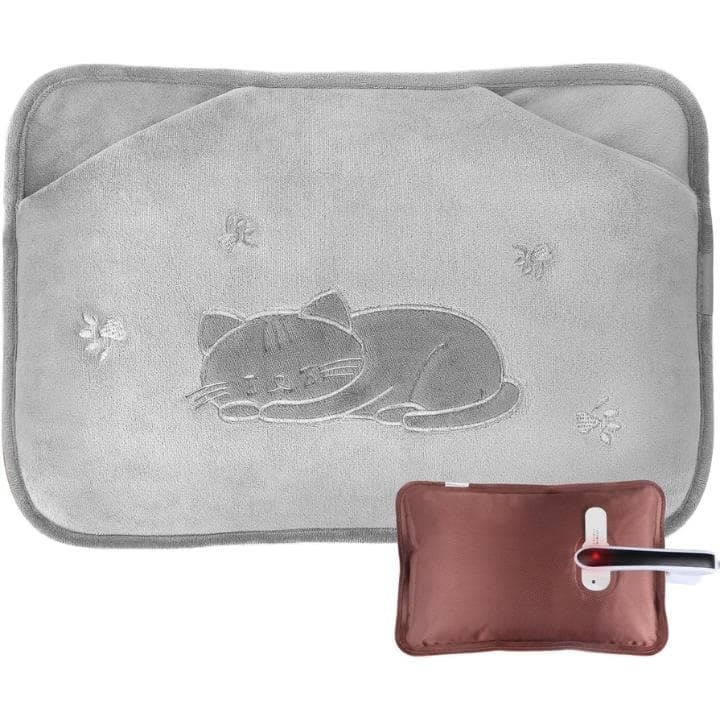 可愛い猫ちゃんデザインのふわふわカバーは保温性抜群で、手を入れられるポケット付き。