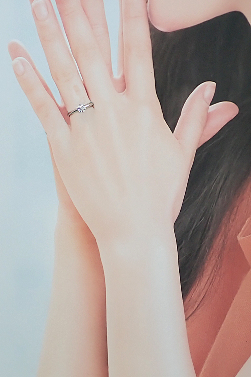 コメントティファニーの、一粒のダイヤモンドが眩く煌めく、ロマンティックなソリティアリングです。エッジの効いたアームが美しくスッキリとしたお手元を演出します。