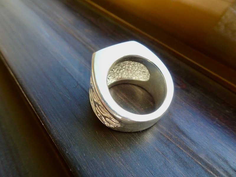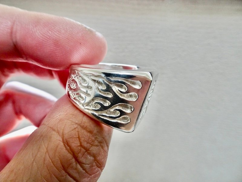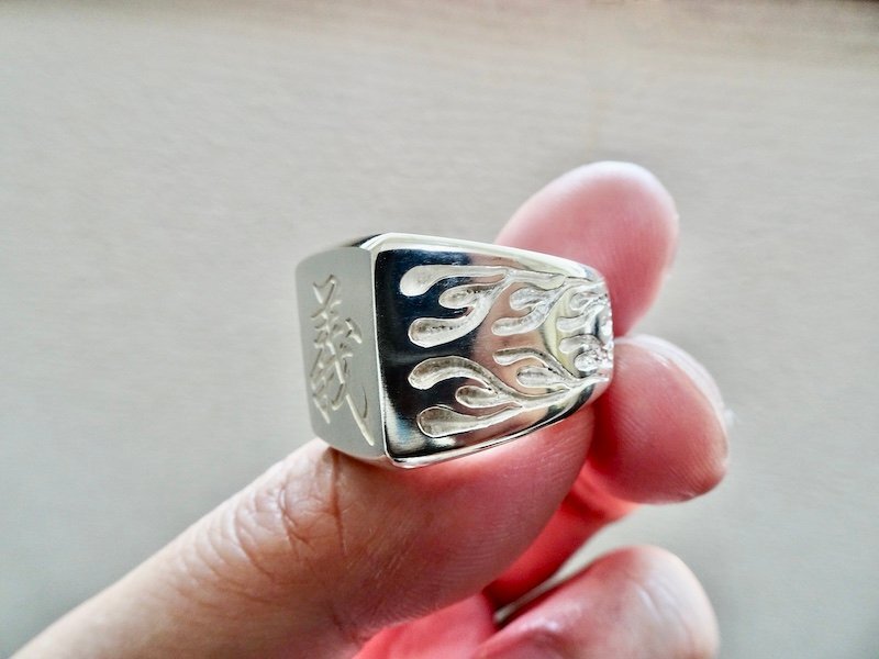 ごらん頂きありがとうございます。 オリジナルブランド 仁尾彫金『文字彫り、ファイヤーパターン、プラチナ印台リング』を出品致します。 オリジナルのアクセサリーを自ら制作しています。ファイヤーパターンモチーフをシンプルな印台リングの両サイドに造形致しました。印台面は艶消し処理をしています。そこに今回、印台面にお客様のご希望の文字をレーザー彫り致します。リングの最大幅は1.9cm弱で、全てプラチナの塊でプラチナ900を約70gとズッシリと大胆に使用しています。全てプラチナの塊なので永久に変色する事はありません!!デザイン、制作を私自身で行っている為、今回、新品をご用意致します!! *こちらの作品につきまして14号から30号まで制作可能でございます。m(_ _)m *こちらの作品につきまして制作に3週間程度かかります。m(_ _)m プラチナ900 約70g (pt900刻印あり) ご質問等ございましたらお気軽にaerothmith@mac.comへご連絡下さい。m(_ _)m インスタにて仁尾彫金で制作状況を掲載していますのでお気軽にご登録をお願い致します。(^-^) 金プラチナにつきましてはフルオーダー制作も承っていますので、ご質問等ございましたらお気軽にaerothmith@mac.comへご連絡下さい。m(_ _)m その他も出品していますのでご覧下さい。m(_ _)m |