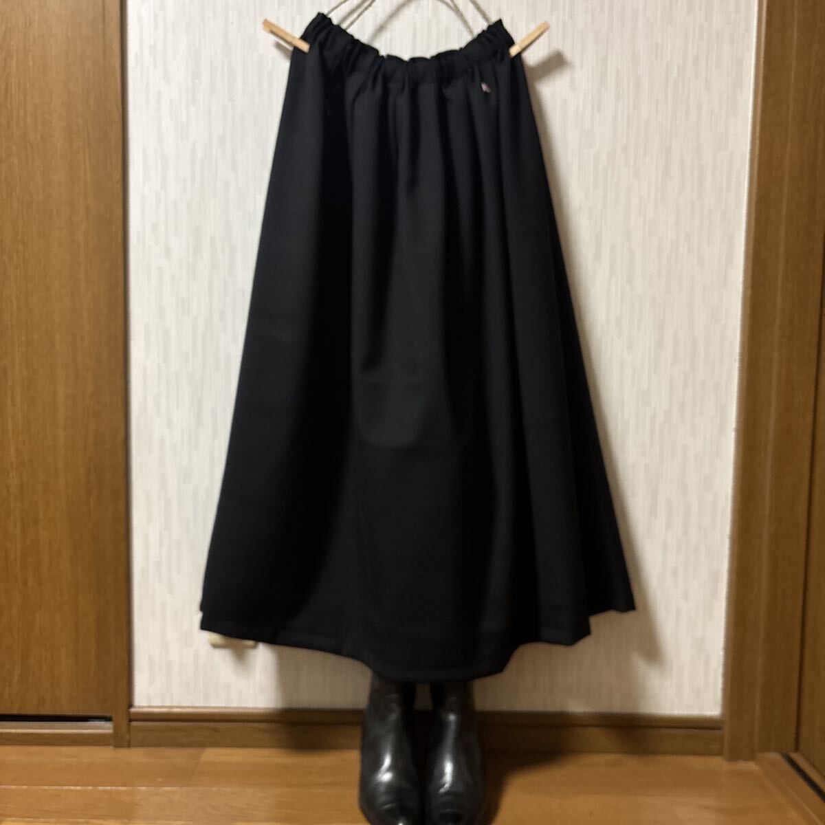 *ハンドメイド*ナチュラル♪ウエストすっきりスカート 黒 ウール ブラック 82cm丈