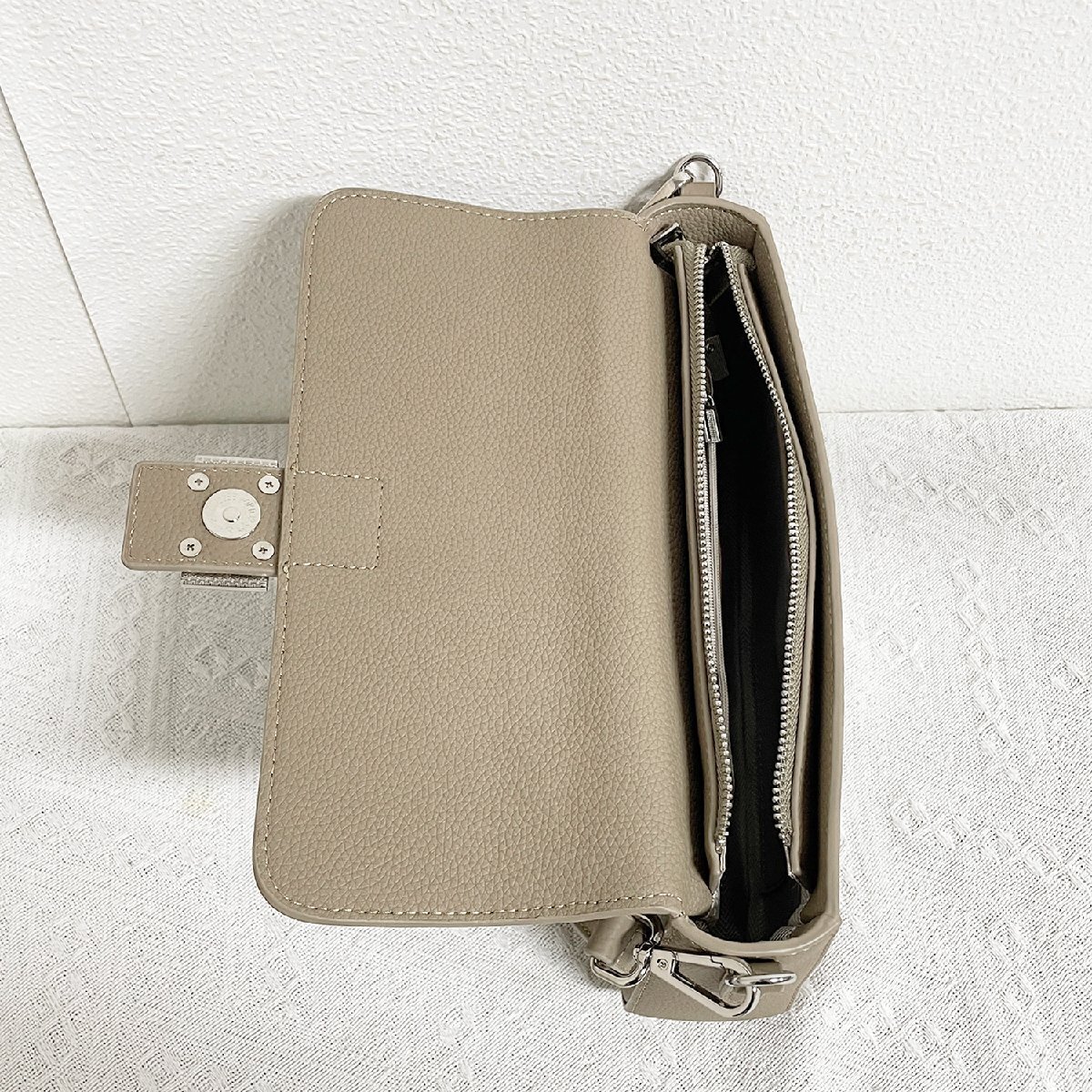 取り外し可能なショルダーストラップ付属でショルダーバッグからハンドバッグにもなるマルチユース、気分とコーディネートに合わせて自由にスタイリング可能な2WAYバッグ!リッチな印象を与えて、上品さを演出してくれます。内側にはオープンポケット二つとファスナーポケット1つを搭載し、スマホや財布などをしっかり収納。荷物をすっきり整理しながらプライバシーもしっかり守れます。