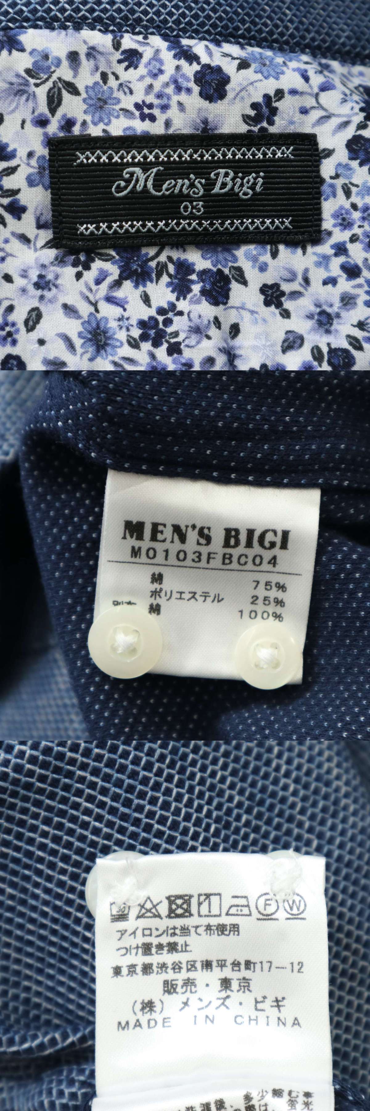 MEN'S BIGI メンズビギ 通年 襟ワイヤー★ 花柄使い 長袖 シャツ Sz.3 メンズ