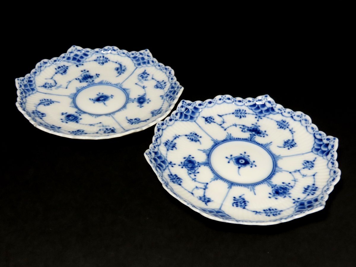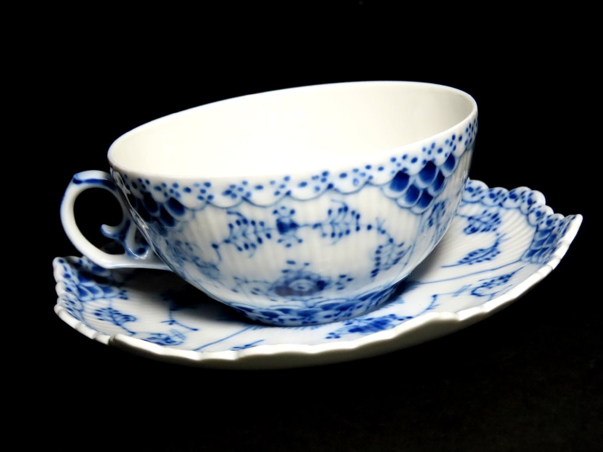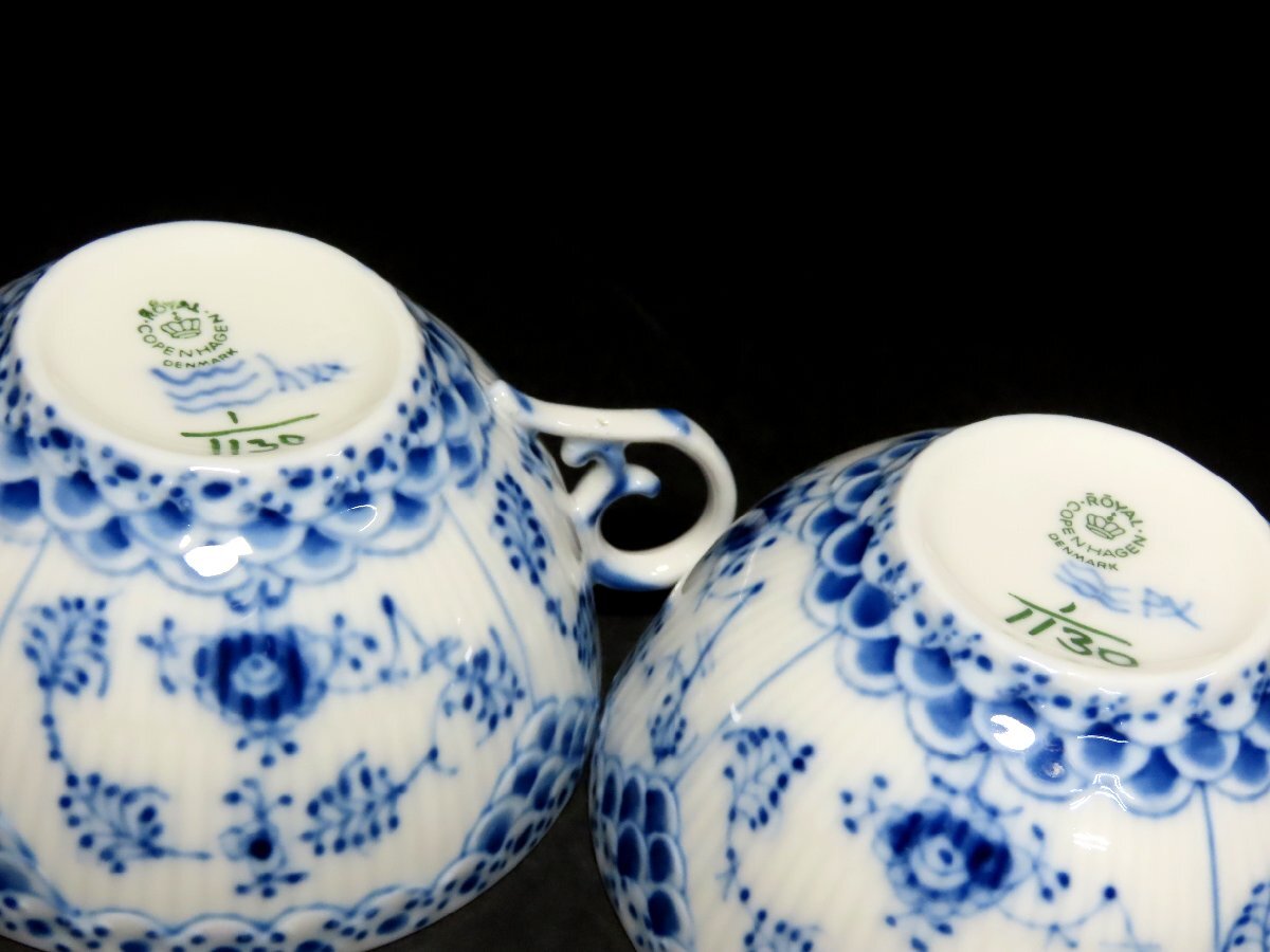 ■ロイヤルコペンハーゲン  ペア・カップ&ソーサー  ブルーフルーテッドフルレース   〈同梱対象商品〉