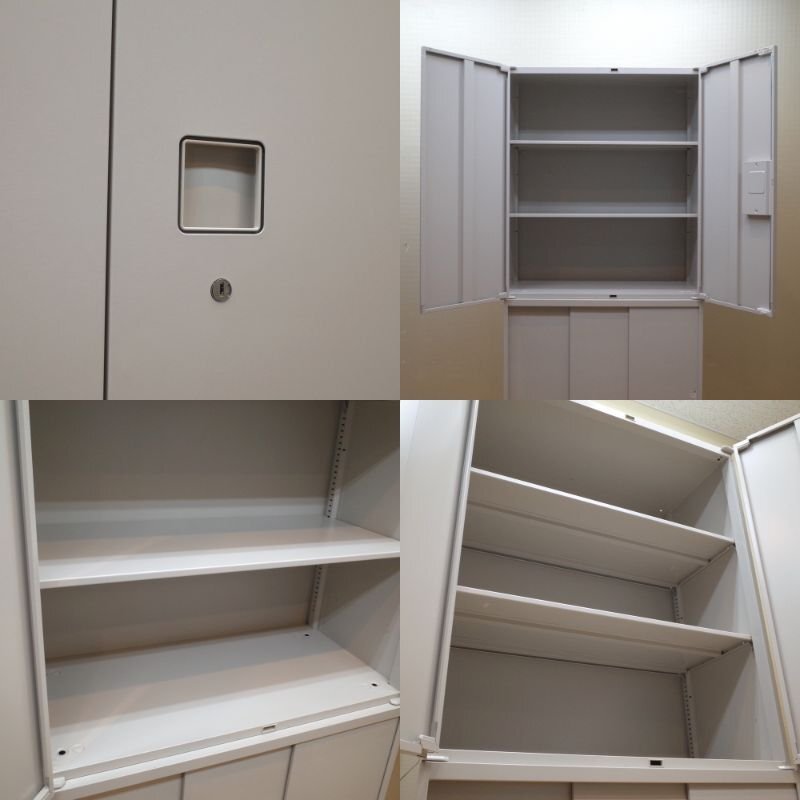 オカムラ レクトラインシリーズ 上下書庫が入荷いたしました。お色味はグレーです。 シンプルなデザインながら優れた機能性と美しい統一感を兼ね備えた収納家具です。 上下合わせて6段棚構成になっており、書類の仕分けもできてたっぷり収納できます。 保管庫の拡充にぜひご活用ください。 ※写真で掲載の商品そのものが届くとは限りません。複数入荷した中の1点を掲載している場合がございます。 |