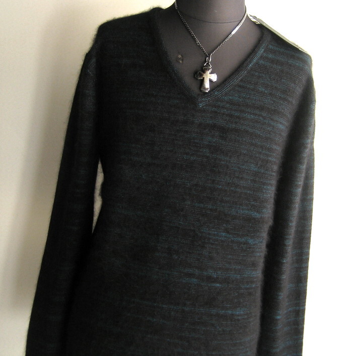 ■メタリックな光沢のあるレーヨンと縮絨されたウールがミックスされたVネックニット