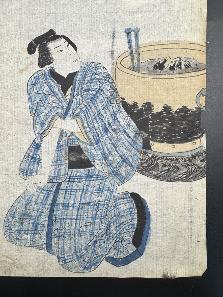 江戸期/真作 肉筆浮世絵「河原町昔祭文」役者絵 歌舞伎絵 芝居絵 紙本 大判 検:歌川豊国