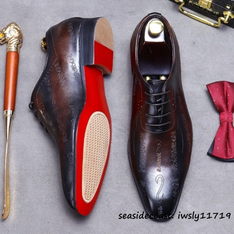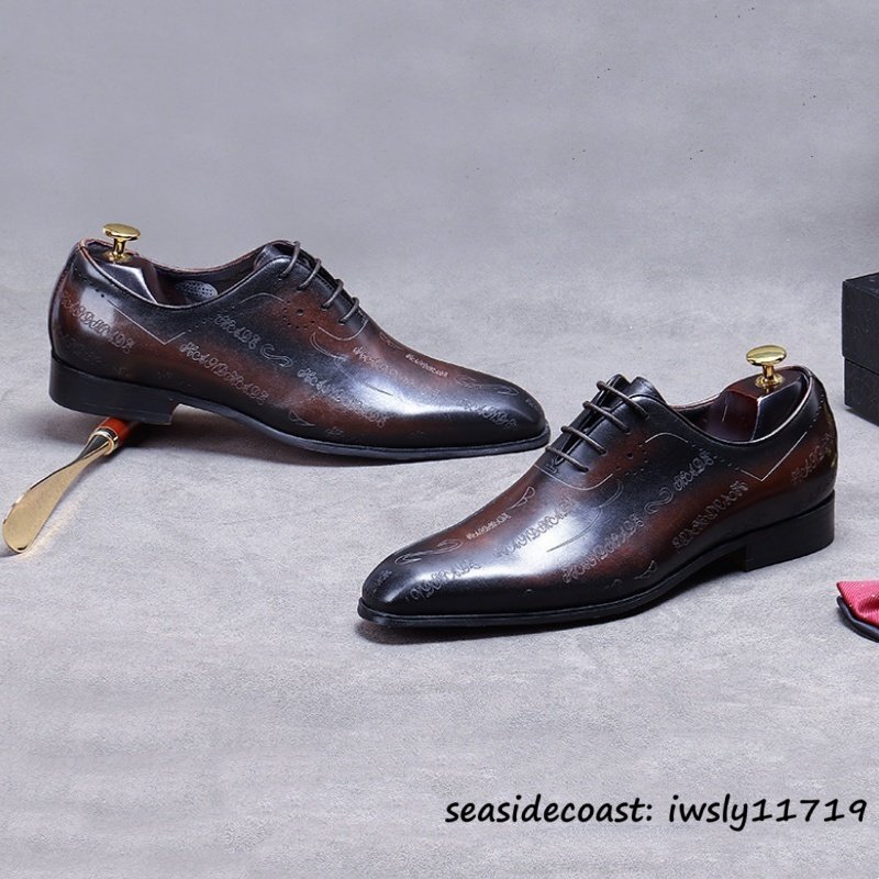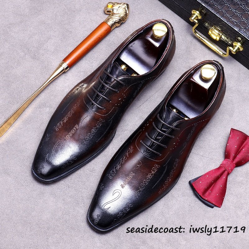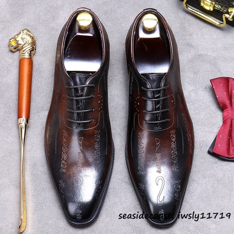 極美品*定価9万 新品 ビジネスシューズ 最高級 牛革 レザーシューズ 職人手作り 紳士靴 本革 ドレスシューズ 革靴 結婚式 珈琲色 24.5cm